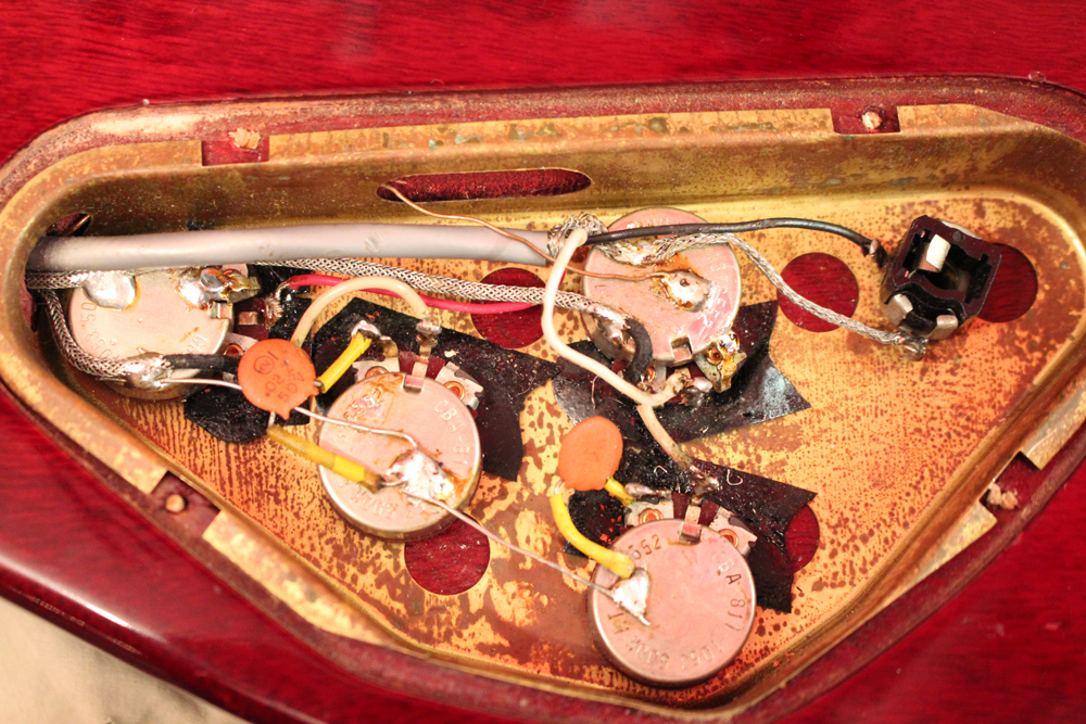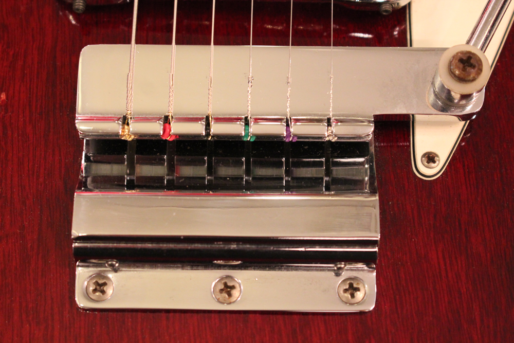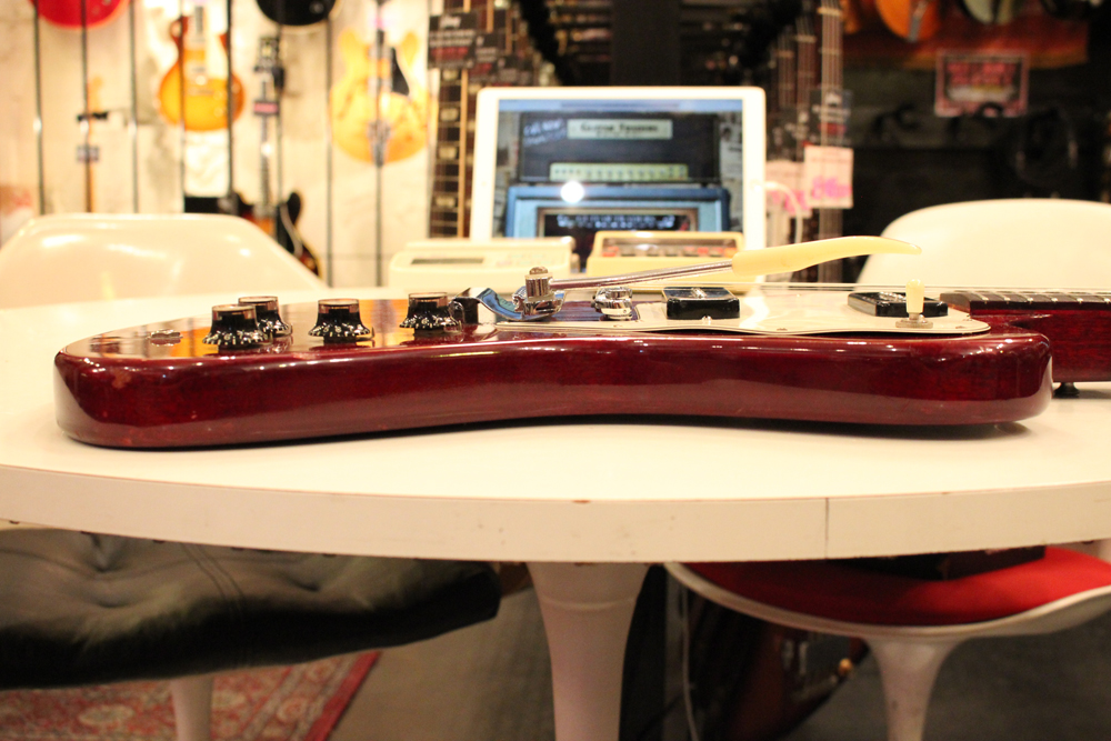 66年製の機体で、ピックアップセレクターもスライドスイッチから使い易いトグル・スイッチに変更された直後の仕様です外観は、チェリーレッド・フィニッシュのフェイディングも殆ど無く、色濃くチェリーレッドが残る、綺麗な状態を留めたエクセレント・プラス・コンディション!