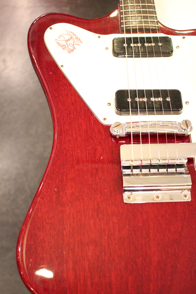 P-90・ピックアップを 2基搭載した、ノン・リバース・ボディのファイヤーバード・I今回入庫は、カスタム・カラーの1つである、チェリーレッド・フィニッシュ" !