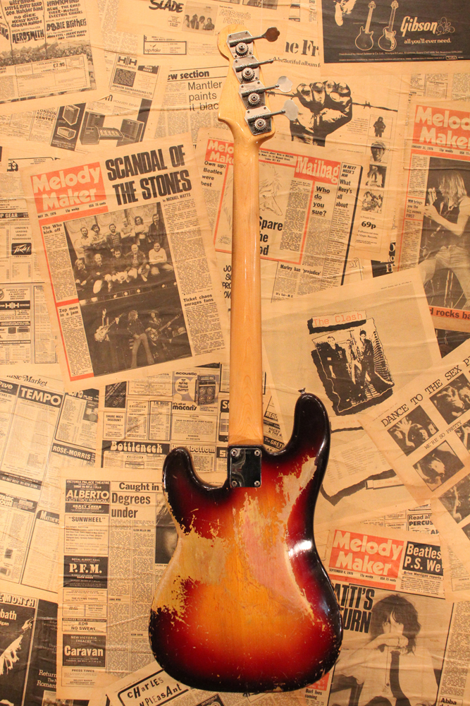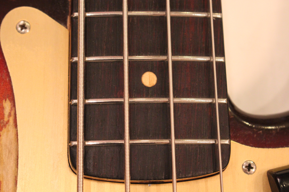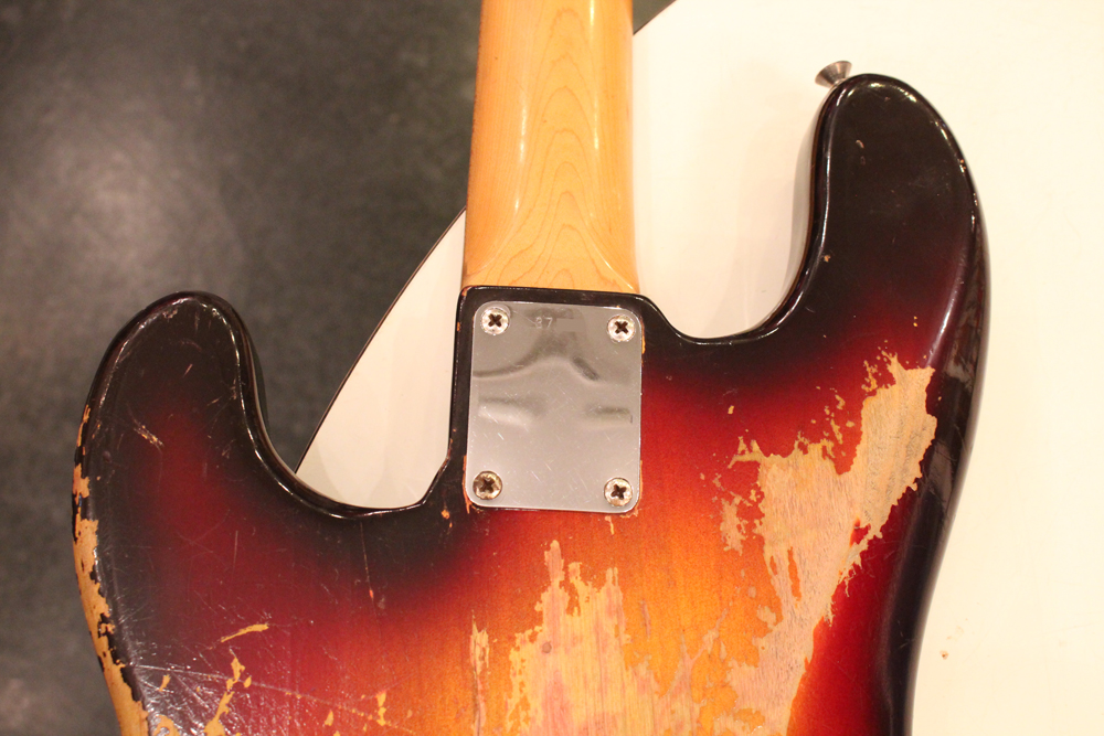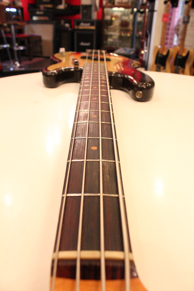 今回見つけて来た機体は、その移行期にほんの少数のみ存在する、アノダイズド・ピックガード仕様のスラブ・ローズウッド・ネックを持つプレシジョン・ベースです!