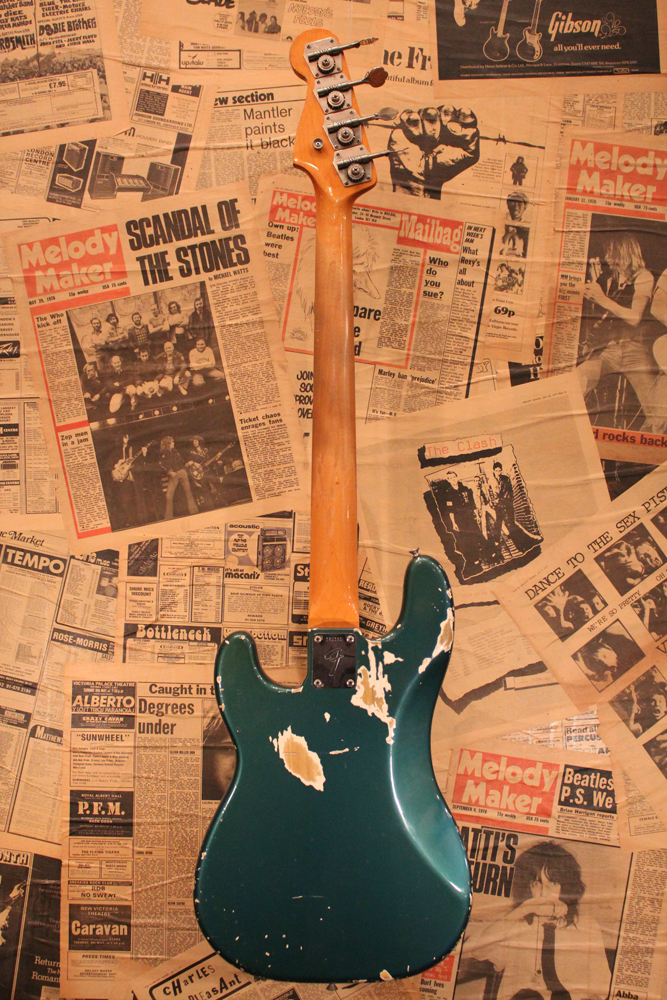 プリCBS期迄のカスタムカラーに採用された、グリーン・ピックガード仕様は数が少なく、特にプレシジョン・ベースではレアな存在です今回入庫は、外観もヴィンテージならではな、程よいグリーニングと、年式なりのウエア等がボディバックに見られますが、全体的には良い状態のエクセレント・コンディション!