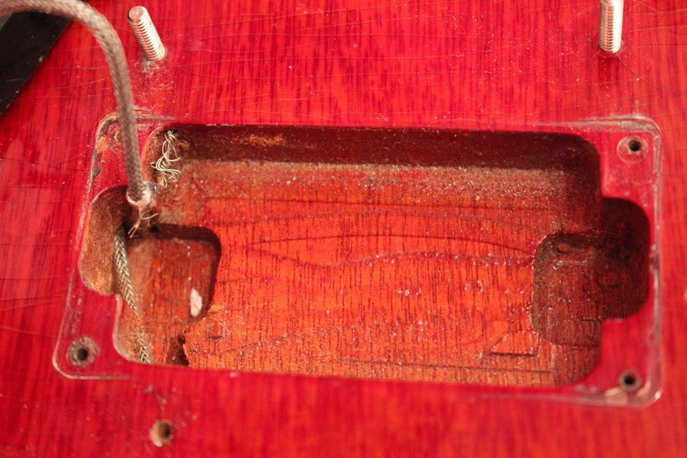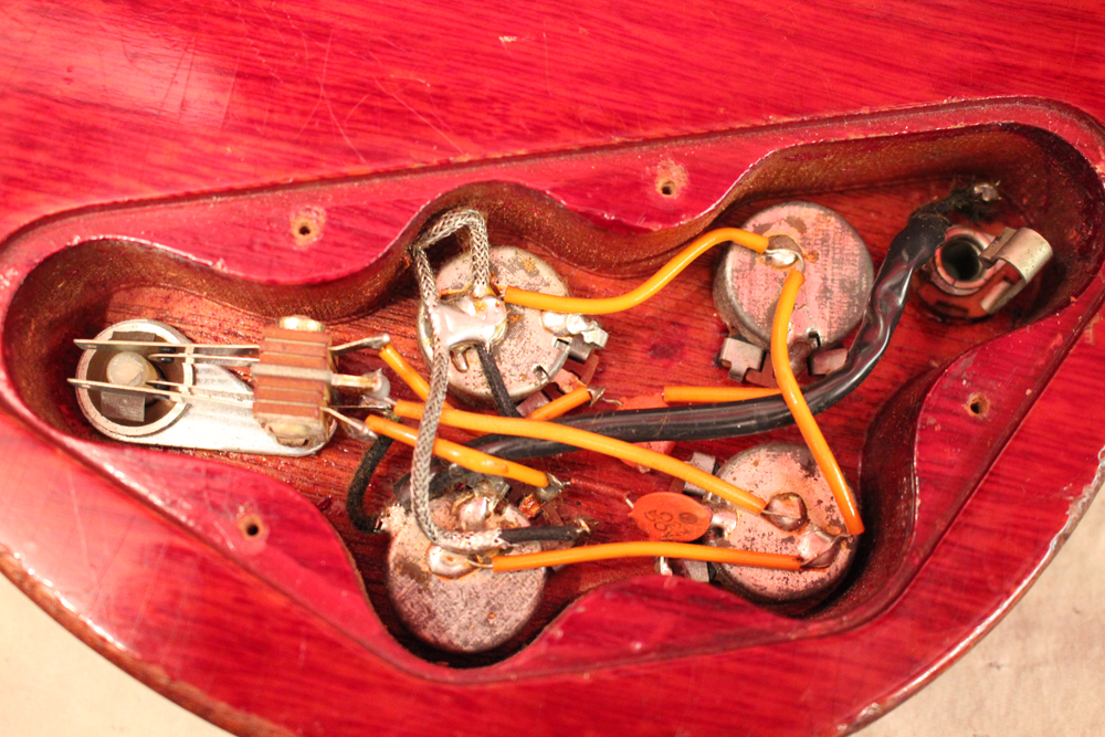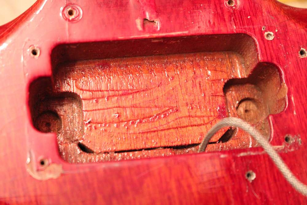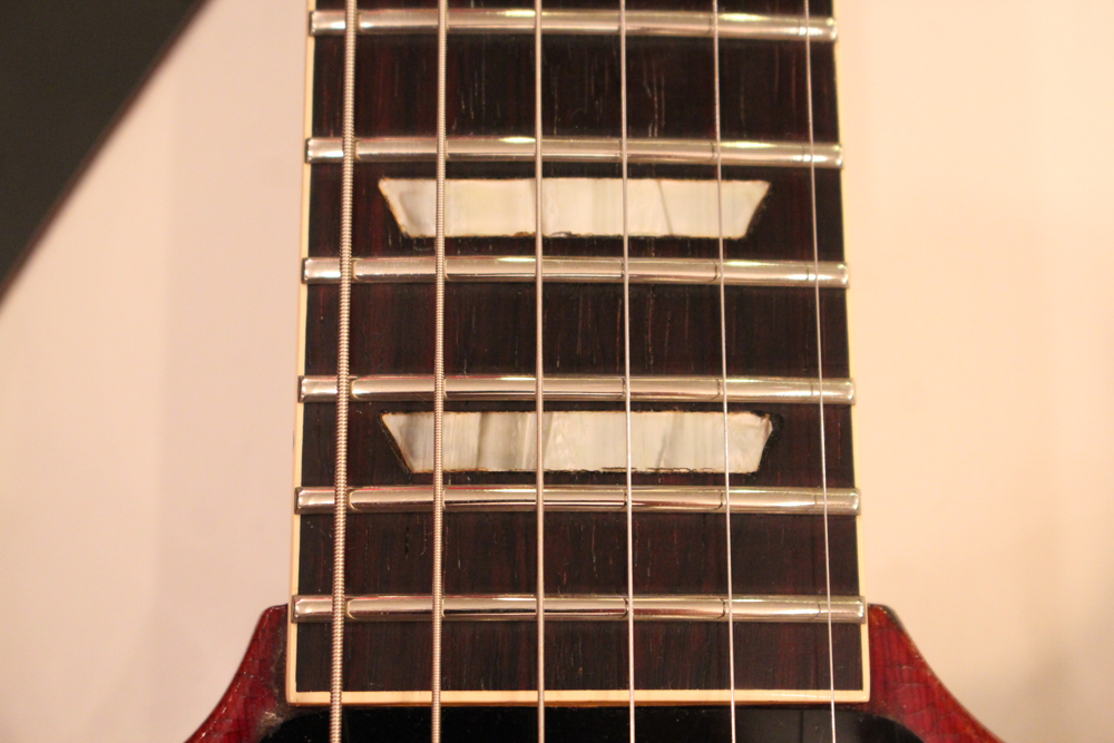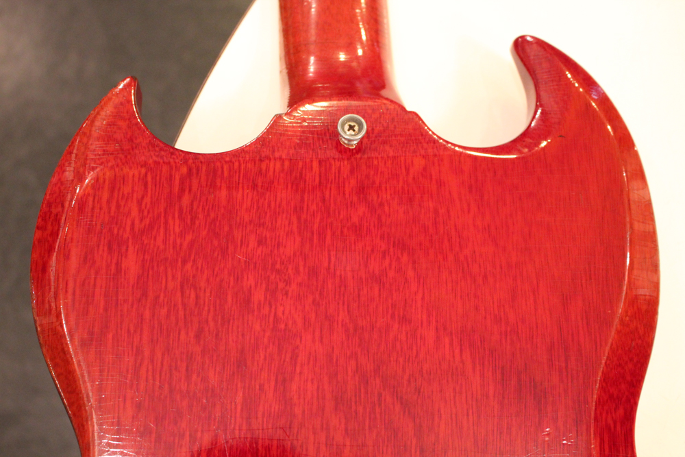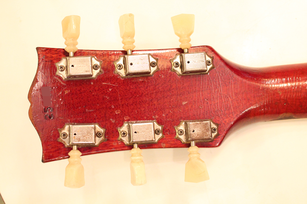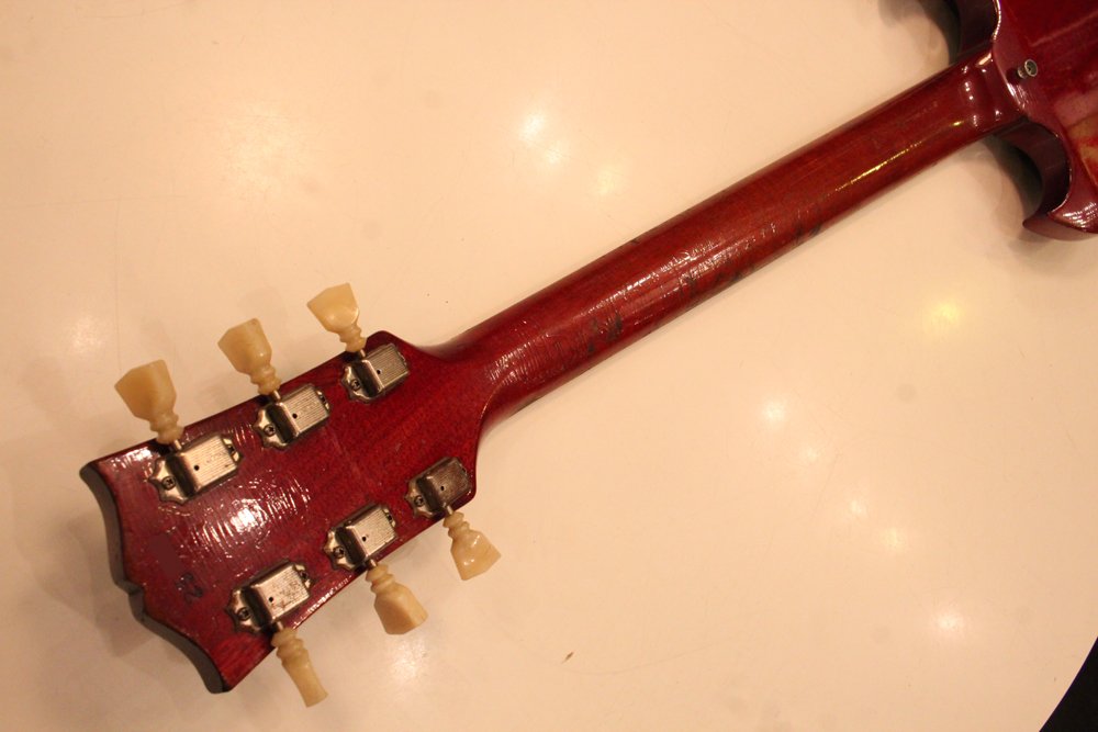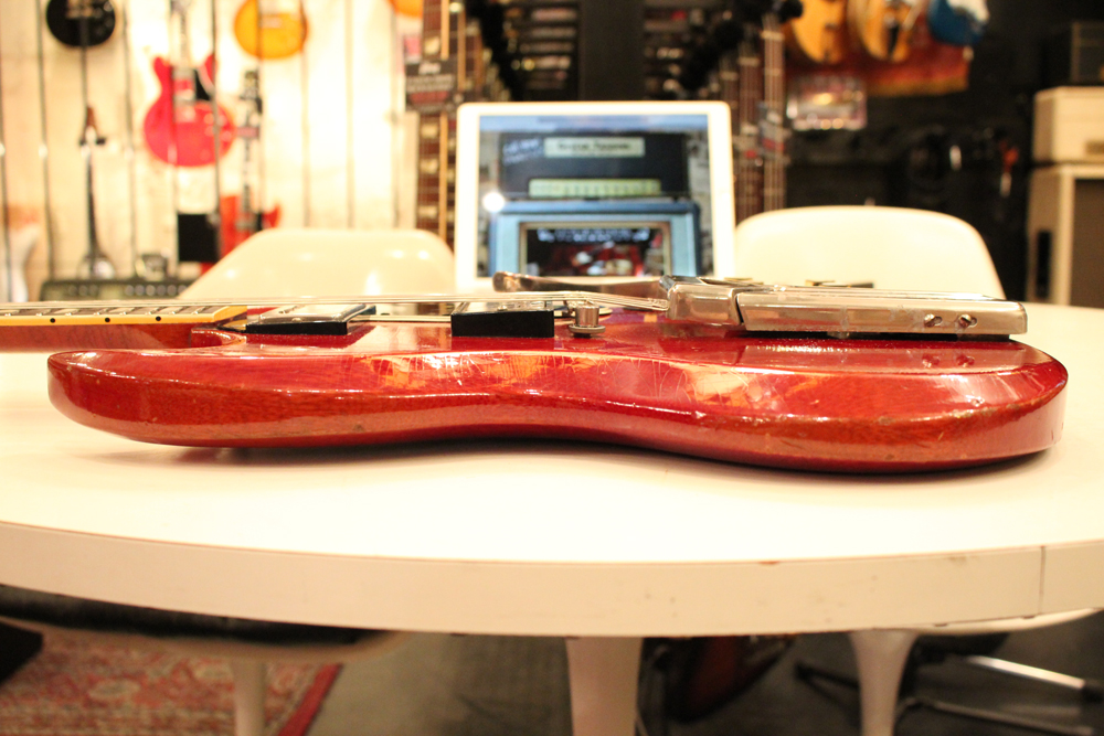 今回入庫は全体的にもコンディションは良く、この初年度の特徴でもある、60年までのレスポール・サンバーストのバックと同じカラーでフィニッシュされたチェリー・レッド・フィニッシュのフェイディングも少な目な、