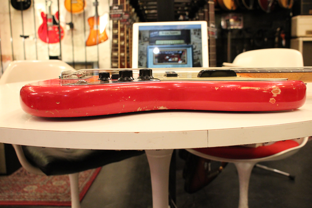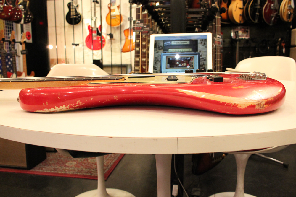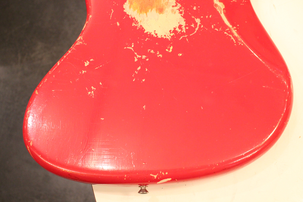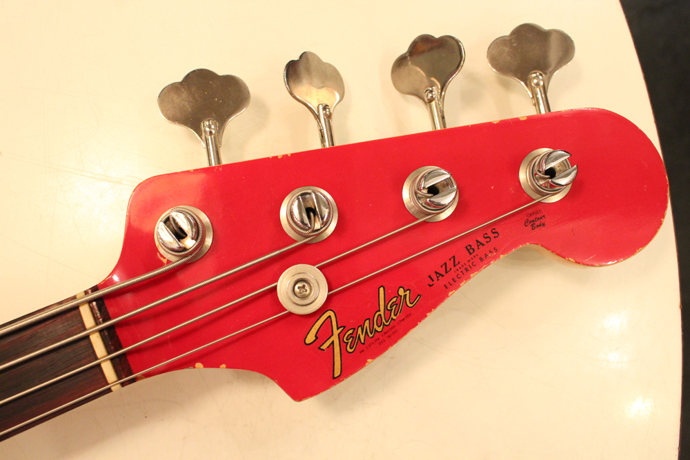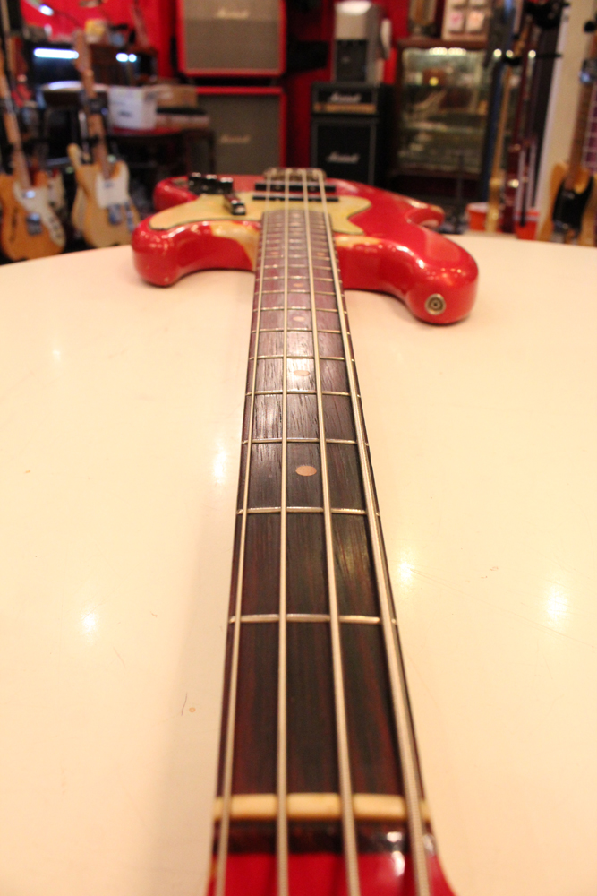 今回入庫は、その62年製・マッチング・ヘッド仕様初期のジャズ・ベースのダコタレッド・フィニッシュ!
