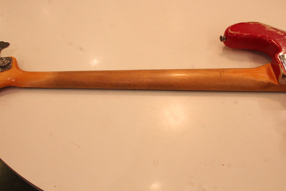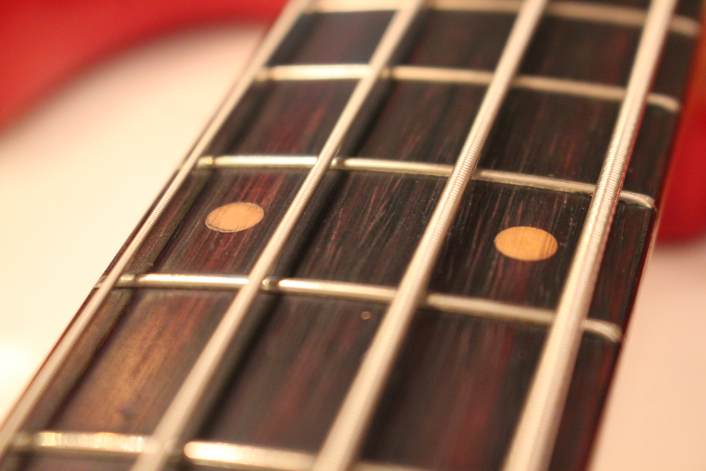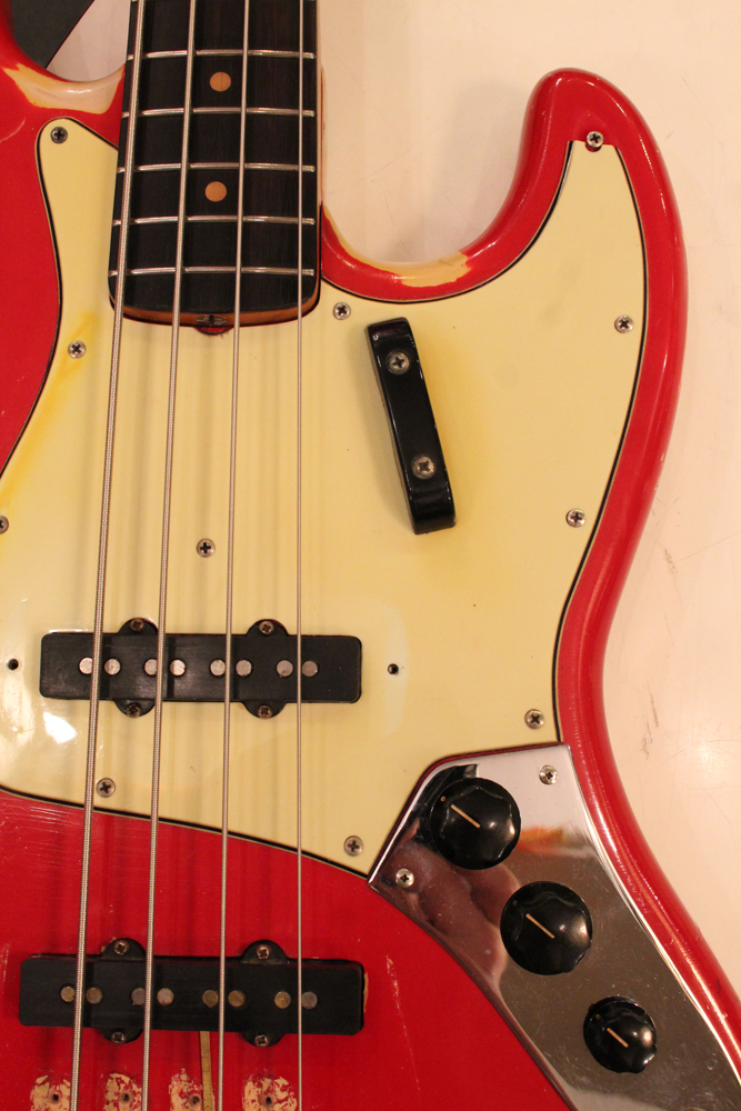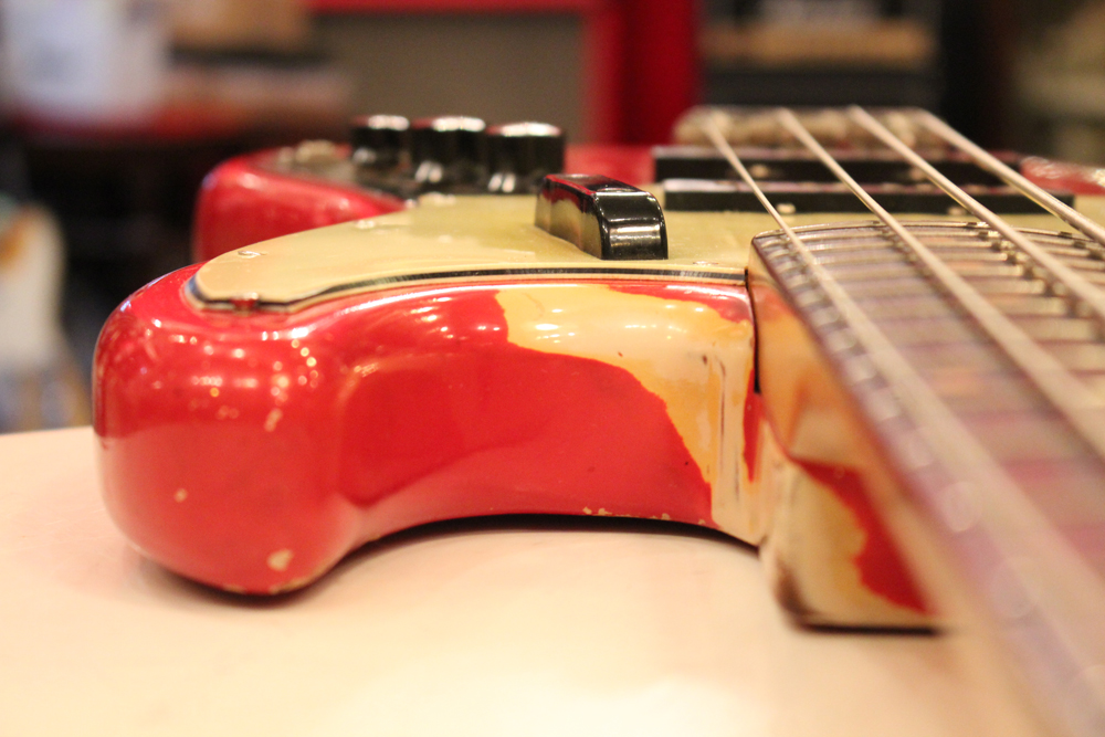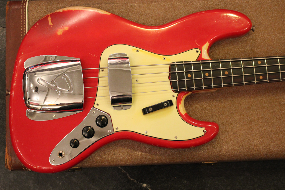 今回入庫は、その62年製・マッチング・ヘッド仕様初期のジャズ・ベースのダコタレッド・フィニッシュ!