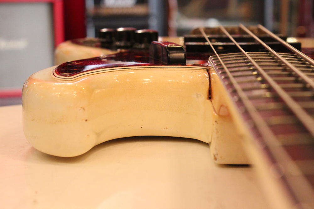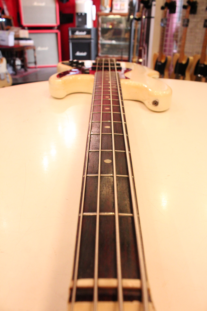 65年後半からフェンダーの上位機種に採用された、ネックにバインディングが施された66年前期のジャズ・ベース今回見つけて来たのは、カスタムカラーの"オリンピック・ホワイト・フィニッシュ"!