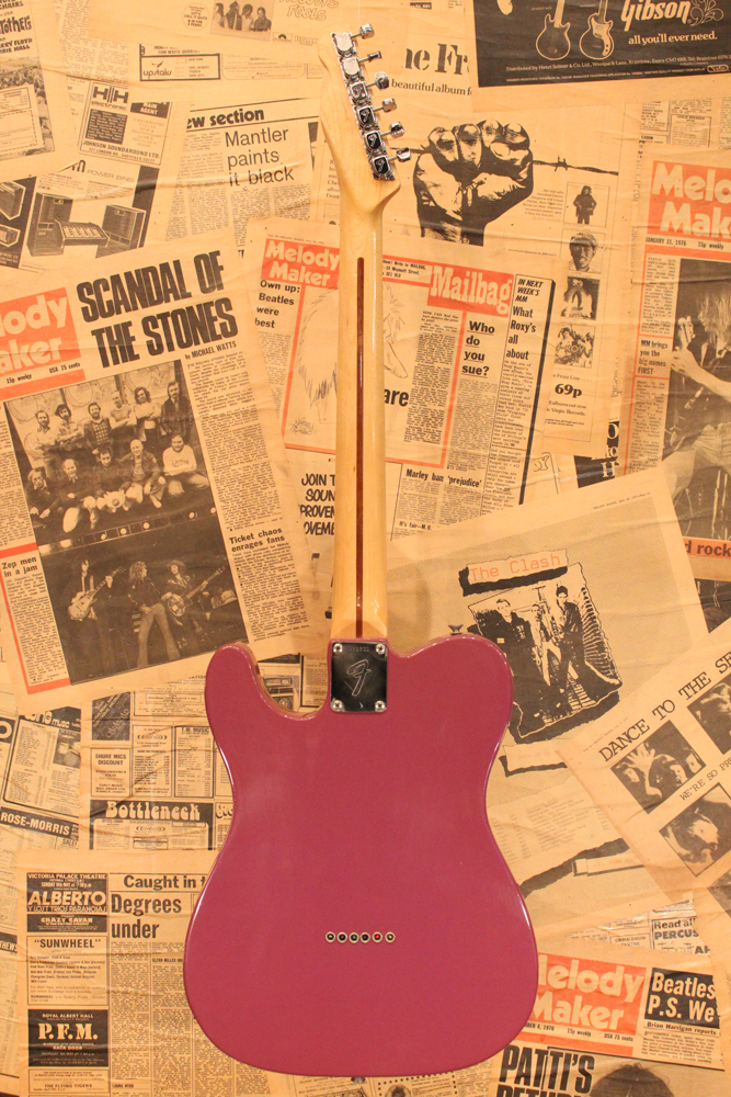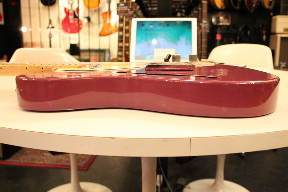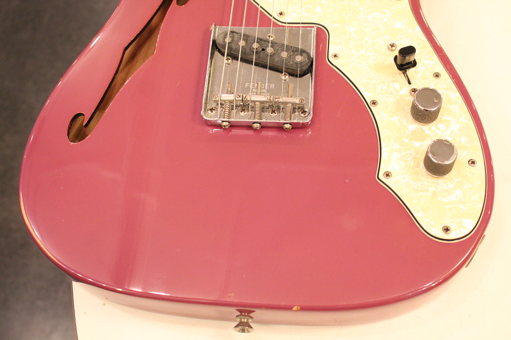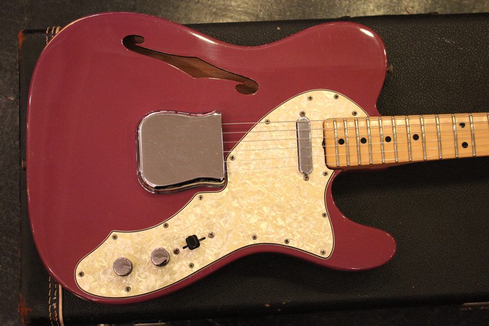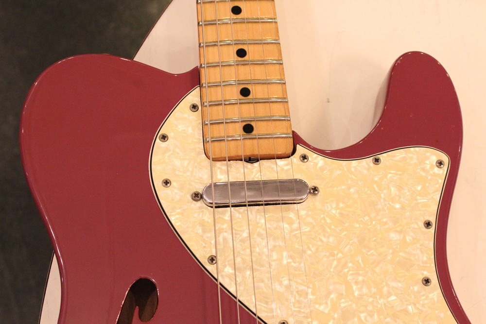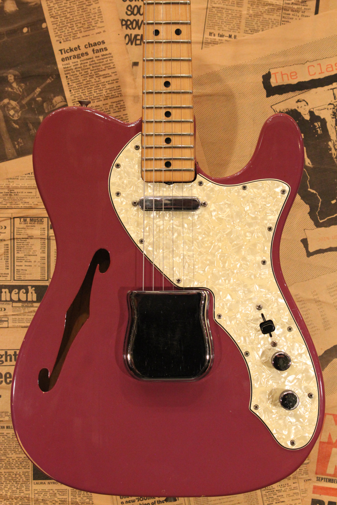 幾度かのカラーの見直しが行われながら、60年代後半にはカラーの種類も制限され、73年頃には廃止となってしまいますそんな中、69年から71年にかけて、ニューモデルとして発売された“テレキャスター・シンライン”モデルに、他の機種には使用されて来なかった、専用のカスタム・フィニッシュを数色、少数ながら生産されています