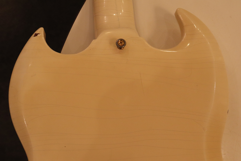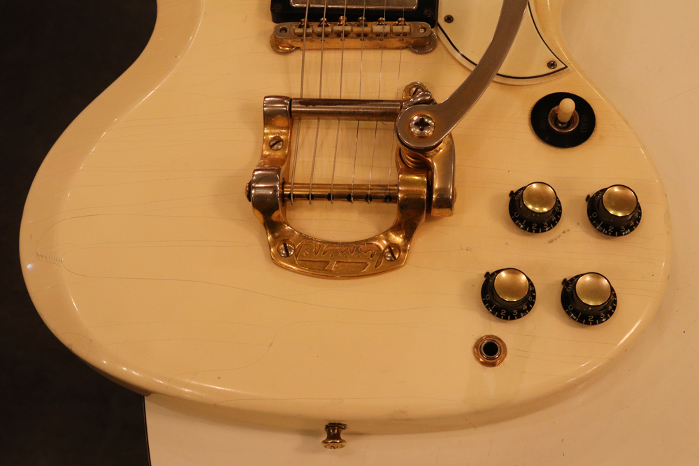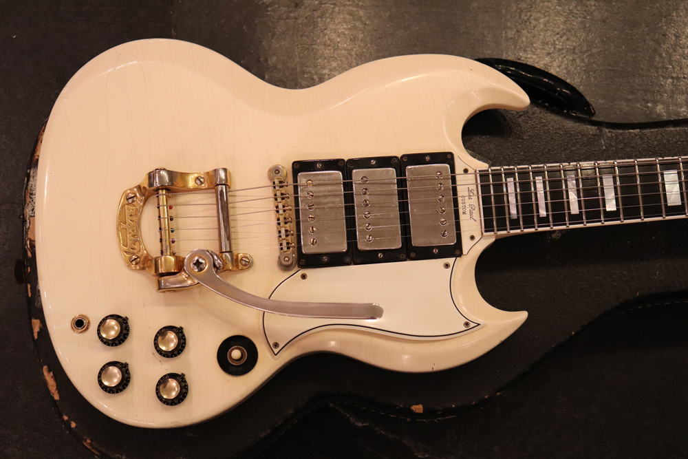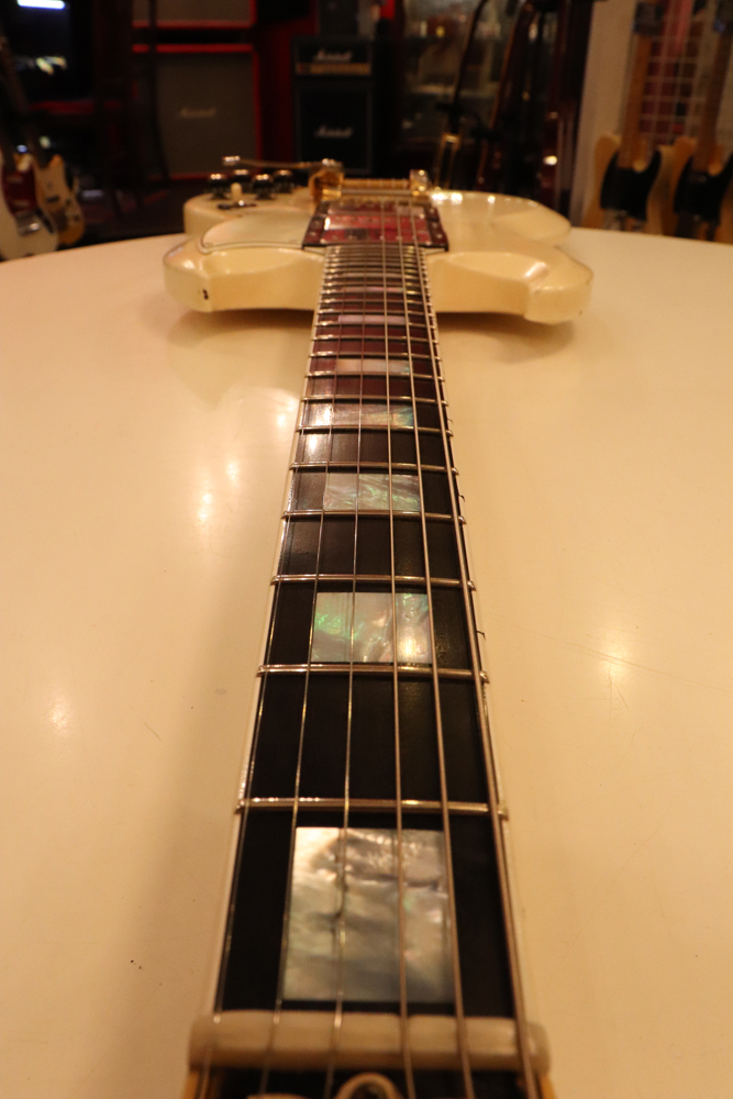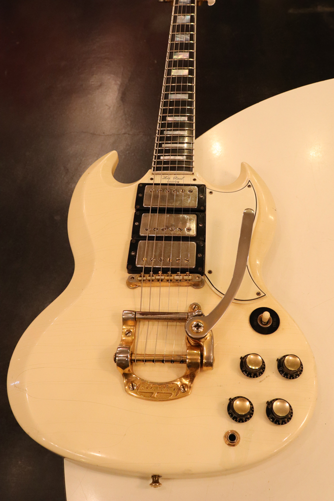 それもスーパー・レアなファクトリー・オプションであった"ビグスビーB-5"を、純正搭載したレア・スペック!60'sのSGモデルの中では、一番テンションが強くチューニングが安定し、ボディバランスも良いのがビグスビー搭載モデルの特徴です