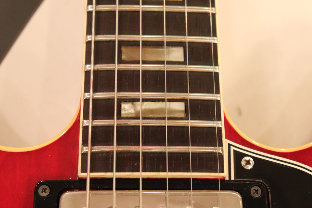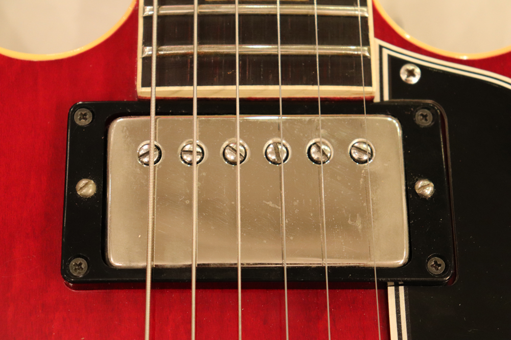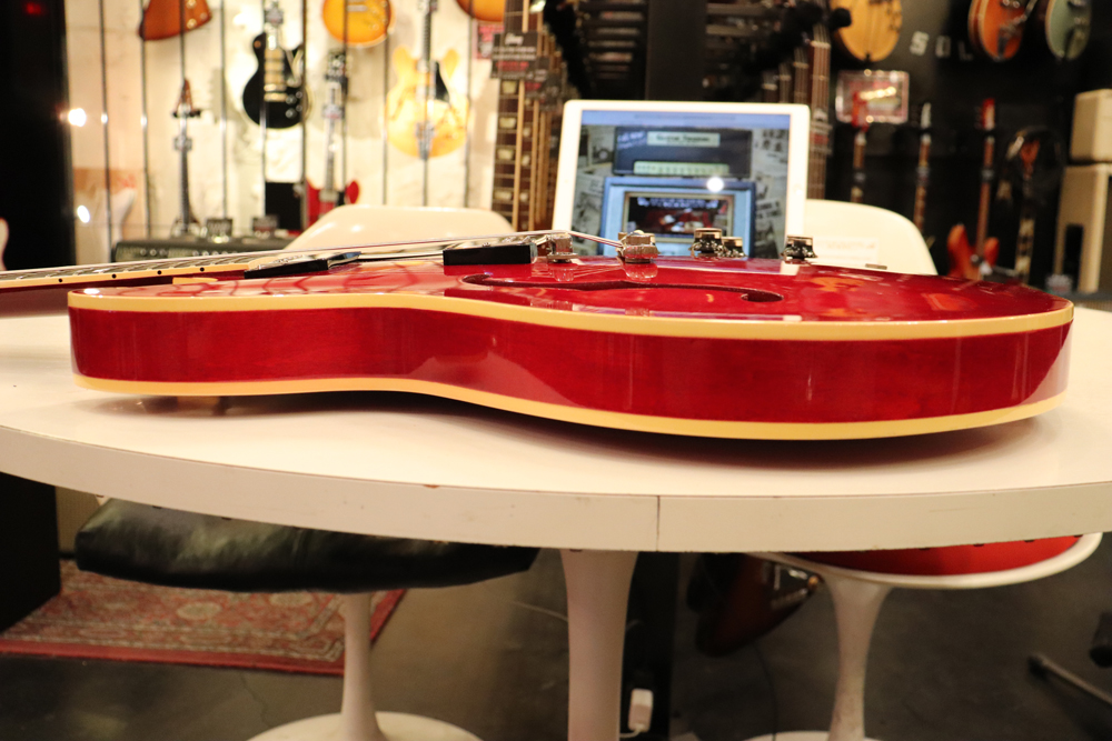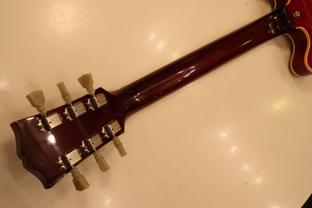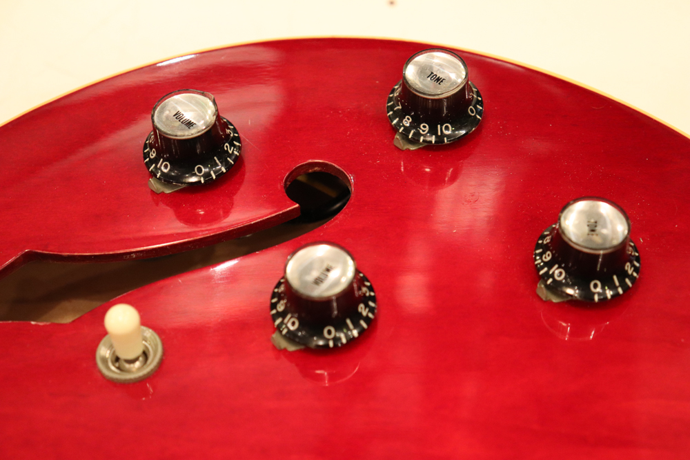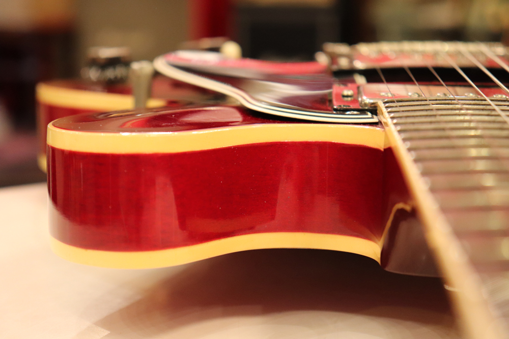 "ミッキーマウス・イヤー"と呼ばれる丸いホーン形状から、幾分シャープにデザインされた新しいホーン形状が64年製の特徴で、正にクリーム期のクラプトンの名演 "Crossroad" で使用された"ES-335" と同様の内容を持った機体です