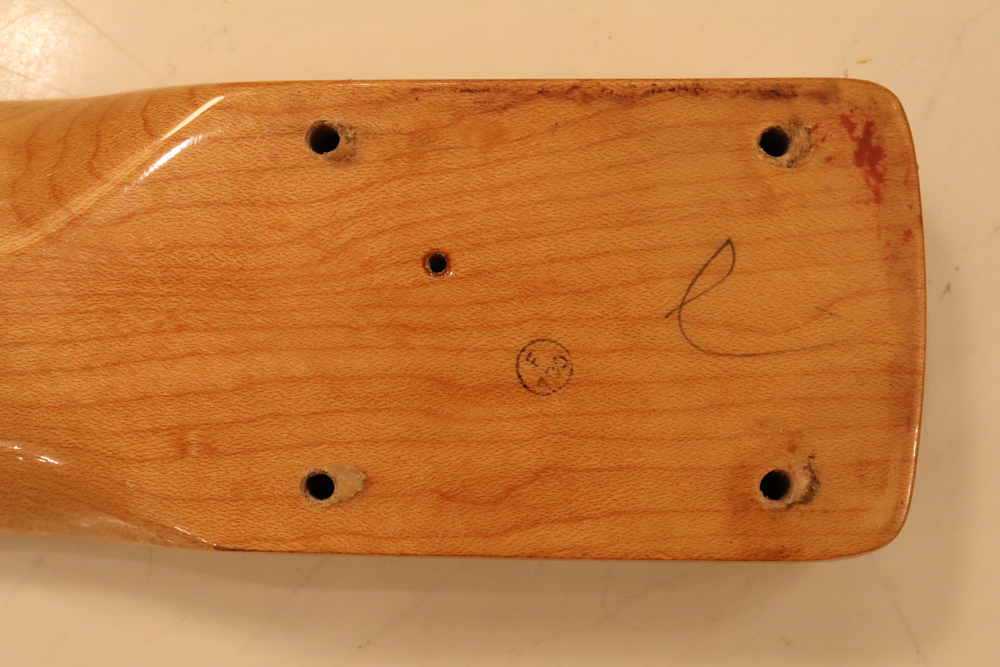 オーダー品等で見られる分も含め、メイプル材のワンピースでは無く、レギュラーのローズウッド指板の