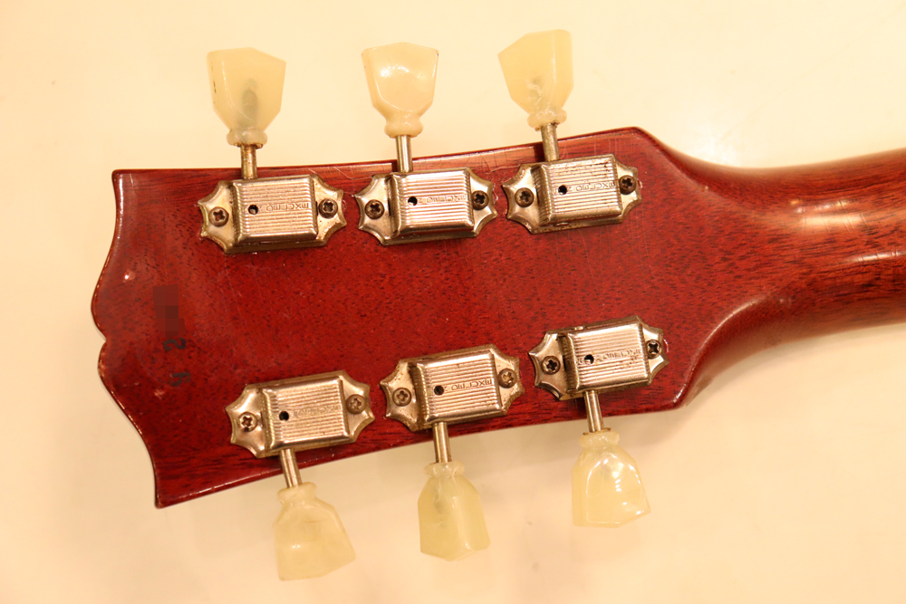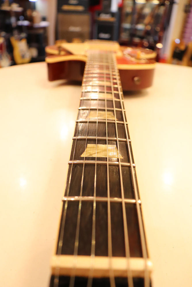 その他は、ピックガード、ロッドカバー、チューニング・ペグ、テールピース・スタッド、そしてノン・ワイヤドのABR-1・ブリッジ等は、50年代に付随するパーツが搭載されていますネックグリップも丁度“59”スタイルに似た、大変弾き易い形状のグリップを持ち、ヘッド部はオリジナル・フィニッシュな部分も嬉しい所で、ヘッドバックのシリアルナンバーは59・スタイルでスタンプされています