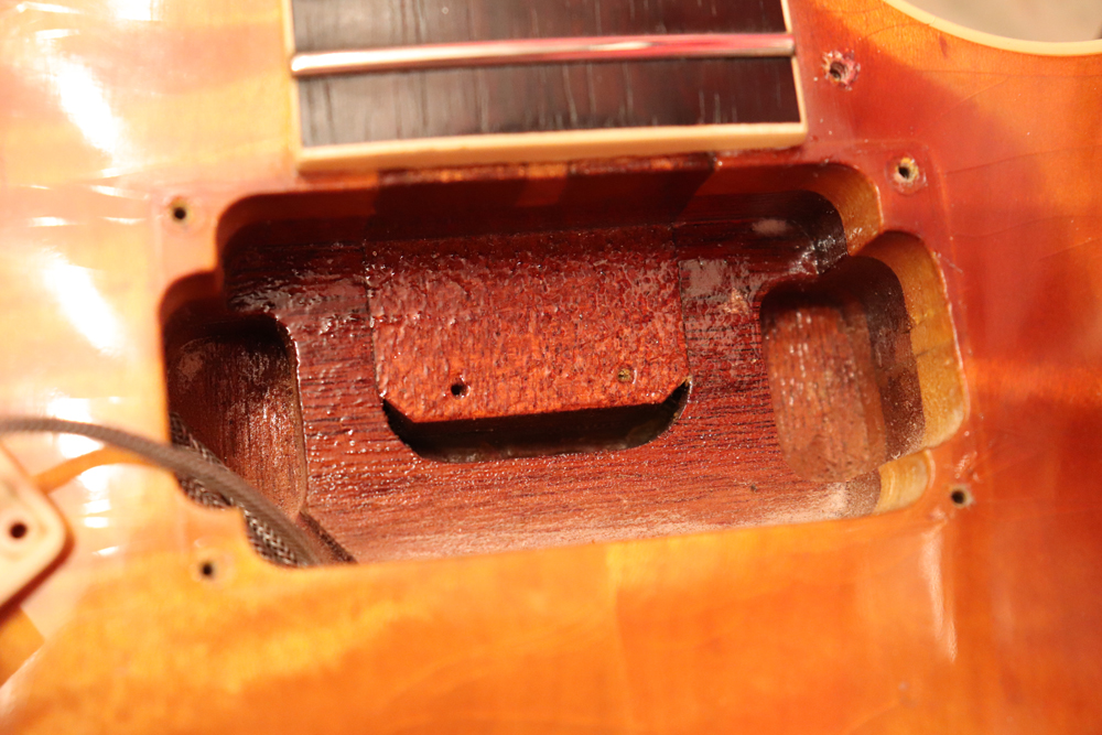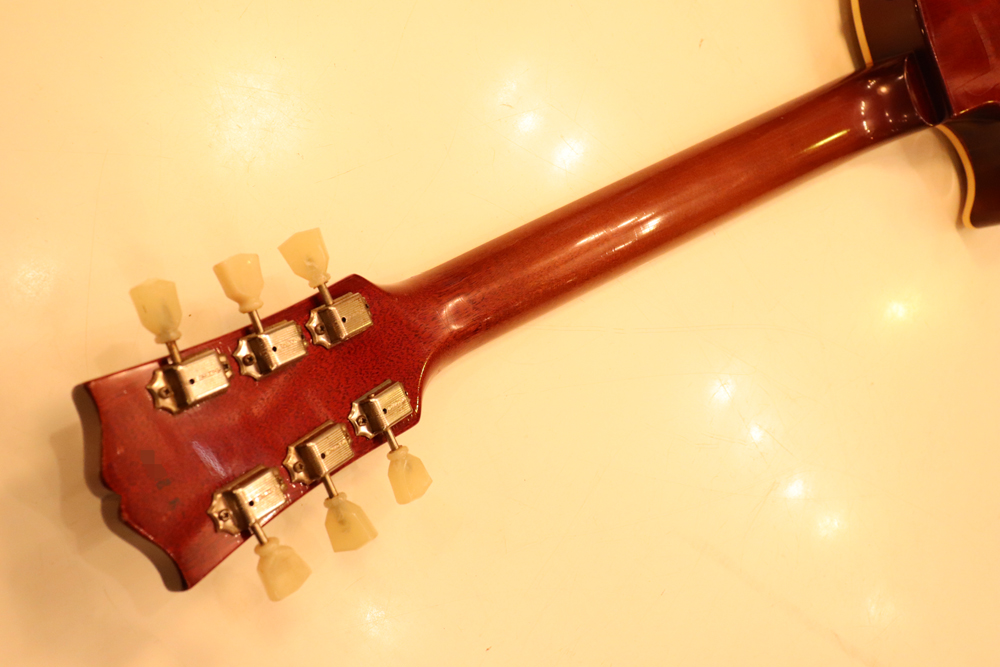 フィニッシュは、ヘッドトップはオリジナルを残して、他の部分はバースト・カラーにリペイントが施されています
