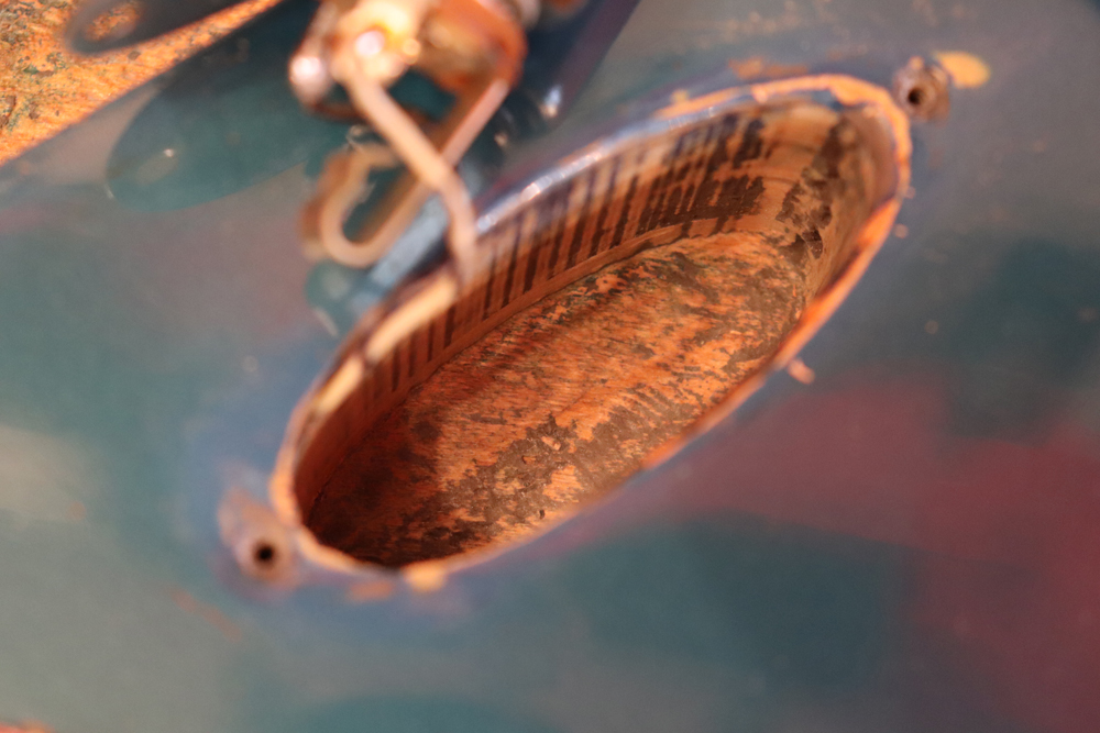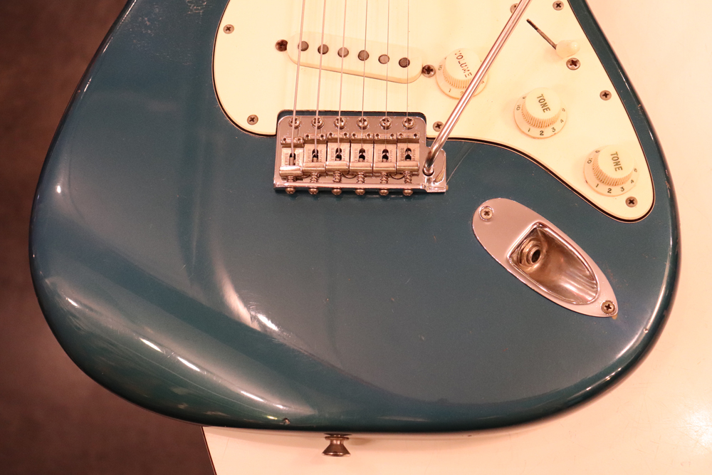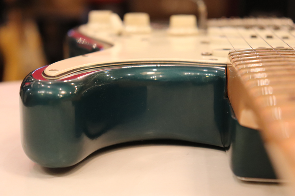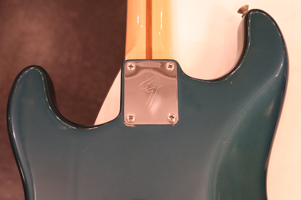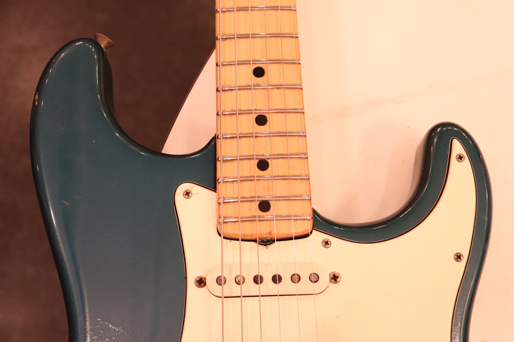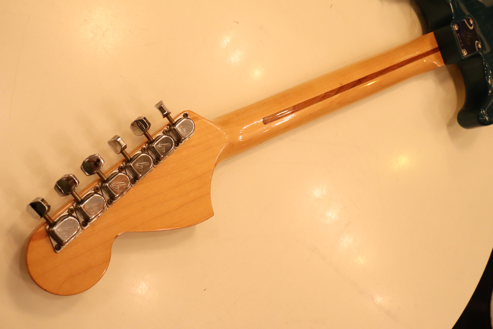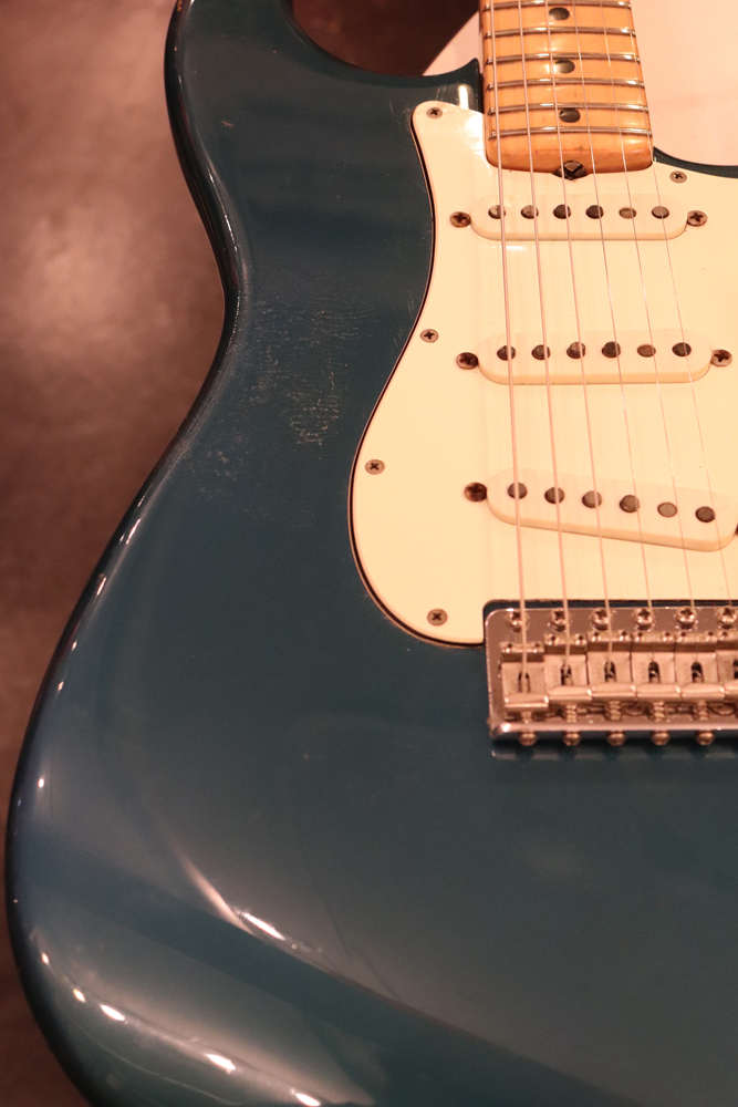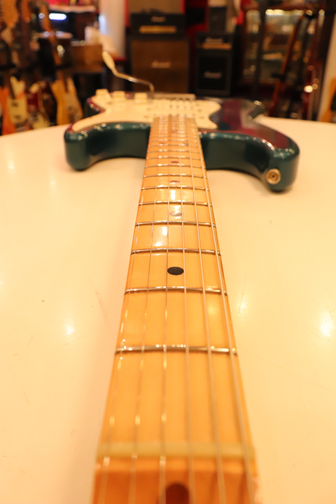 しかし、ストラトキャスターは71年後期にはマイクロティルト機構を採用した3ボルト・ジョイントに変更されてしまいます 今回入庫は、その71年製に、ほんの少しだけ存在する、4ボルト・ジョイントのワンピース・メイプルネックを持ったストラトキャスター! しかも、カスタムカラーの“レイク・プラシッド・ブルー・フィニッシュ”の機体です