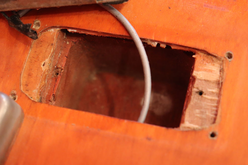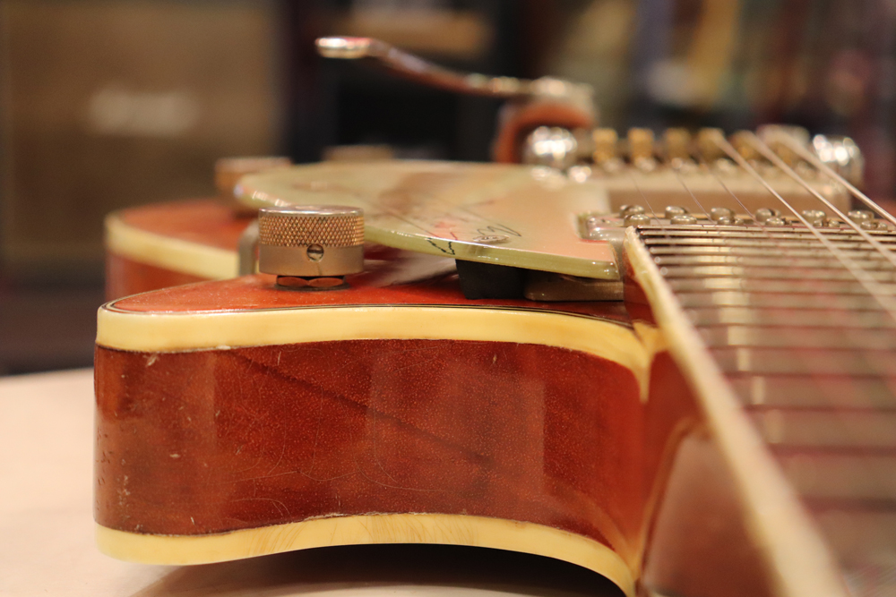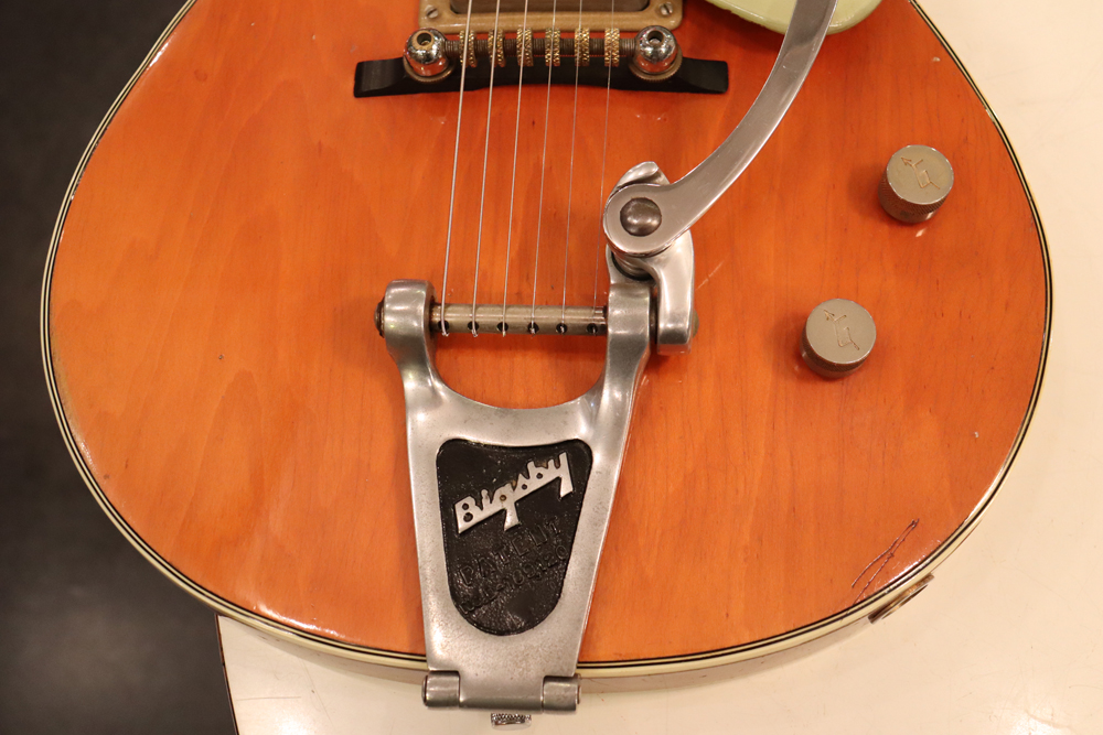 内容は一度別のペグが搭載された形跡がございますが、現在はオリジナルに戻されており、ビグスビーB3が搭載されています