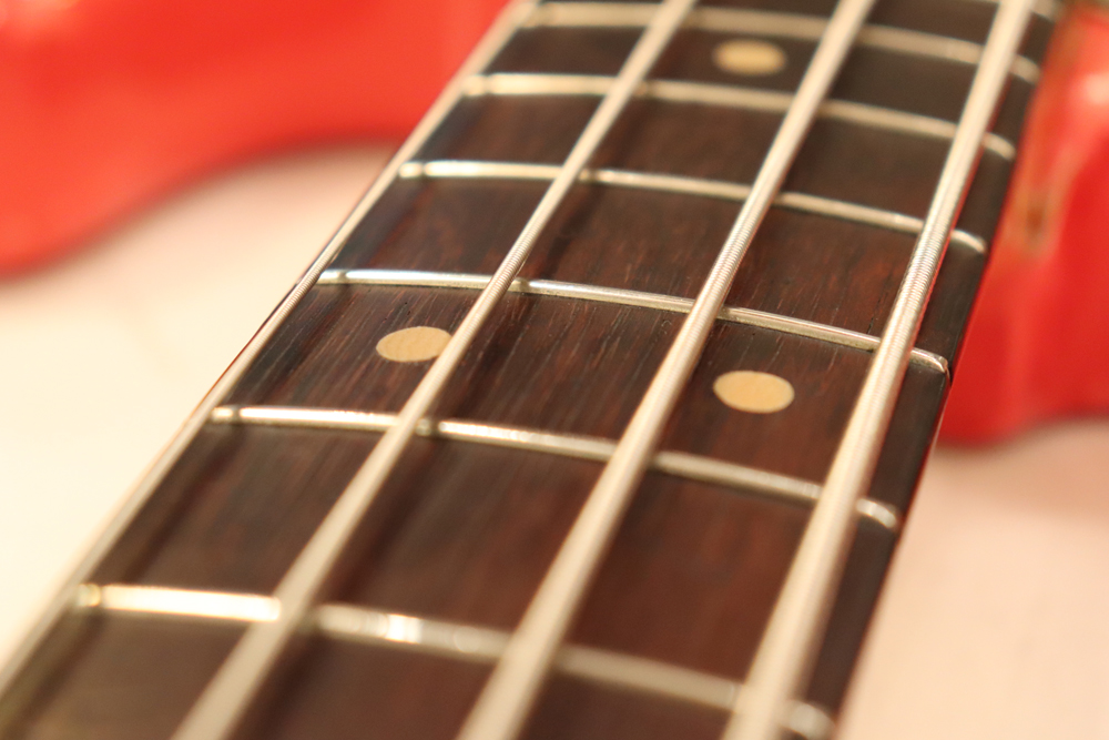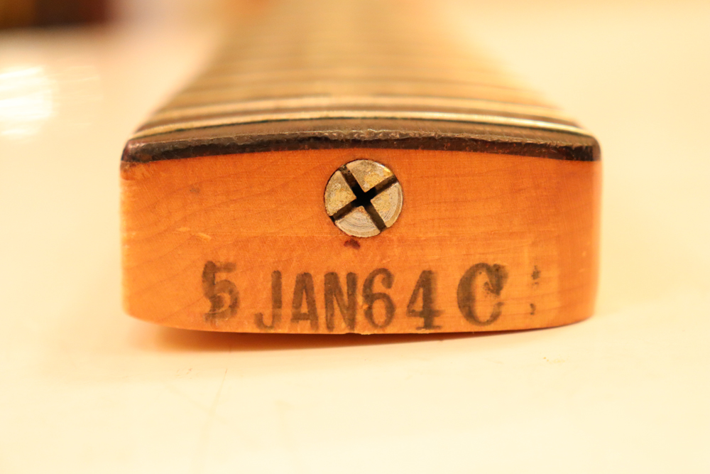 良く目の詰まった漆茶な指板を持ったネックはストレートでプレイアビリティも良く、内容もパーツはフル・オリジナル!
