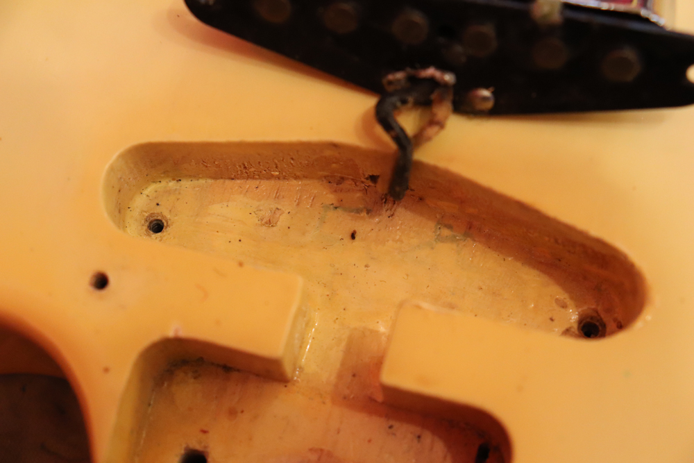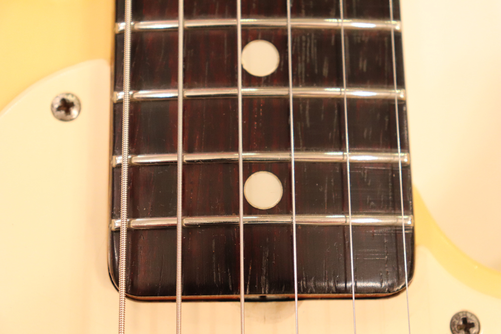 内容はフレット、ナットはリプレイス済みで、プレイアビリティも良く、ワイヤリングがカレント配線に変更されていますが、その他のパーツはオリジナルです