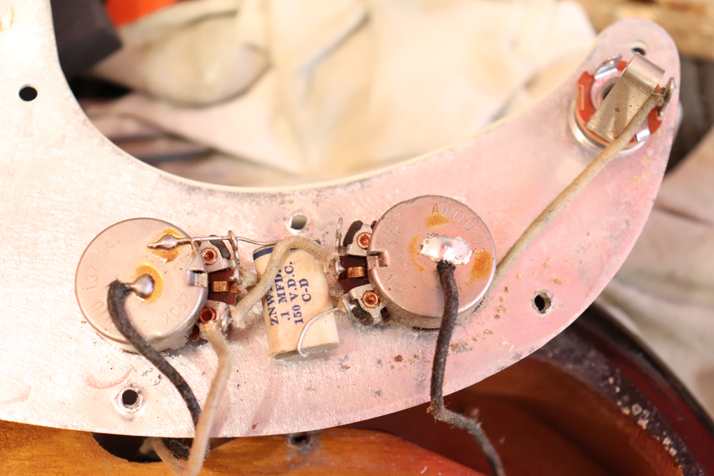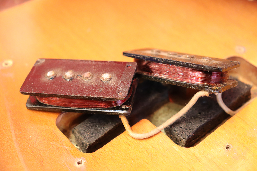 前年58年のジャズマスターに続き、ローズウッドのスラブ貼り指板がプレシジョン・ベースに採用された最初の年式で、外観は、この年式固有の赤の成分が幾分退色したツートーン・バースト・カラーも、50年代の薄いフィニッシュを考慮しても、とても綺麗な状態をキープした、エクセレント・クリーン・コンディション!