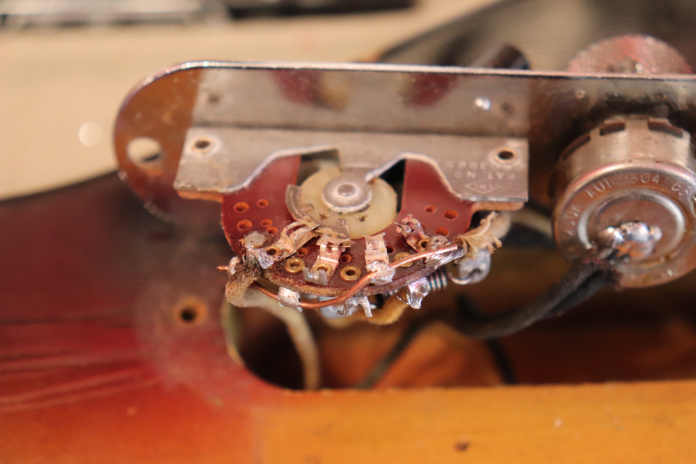 オリジナル、ポットもオリジナルですが、ピックアップセレクトは、通常のカレント・ワイヤリングに変更されています