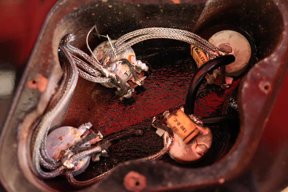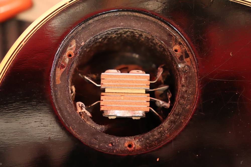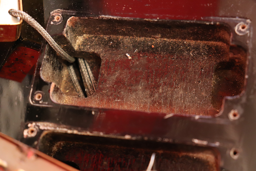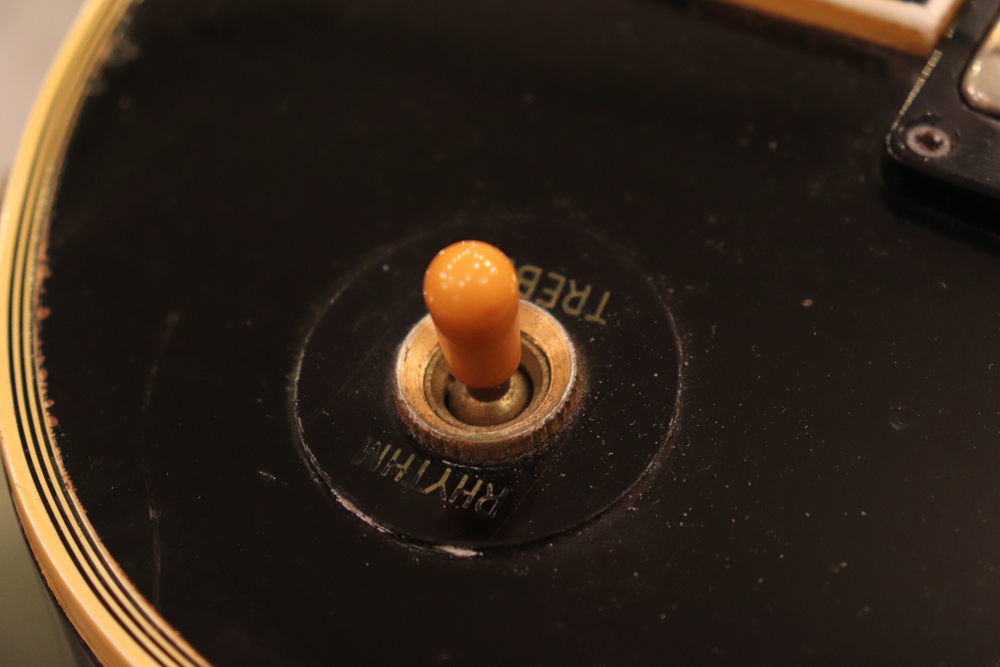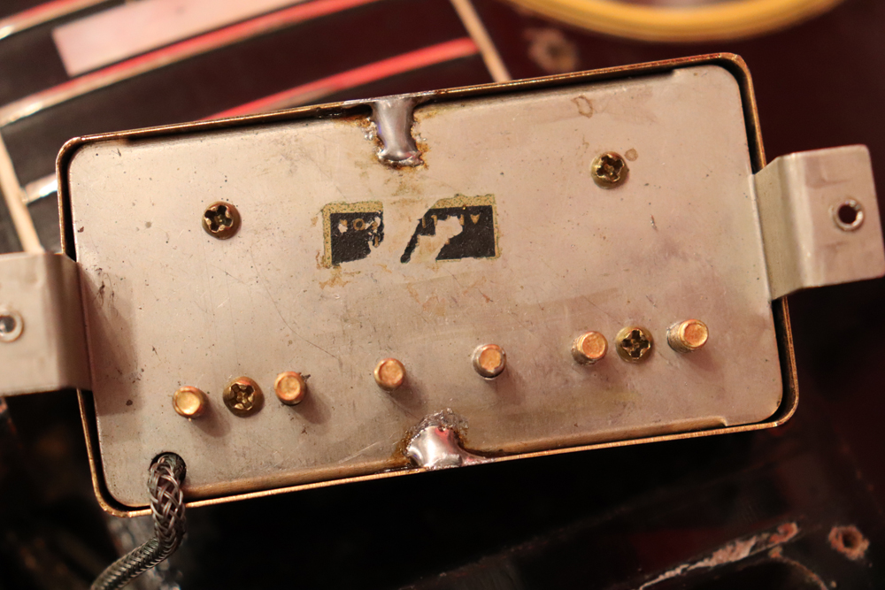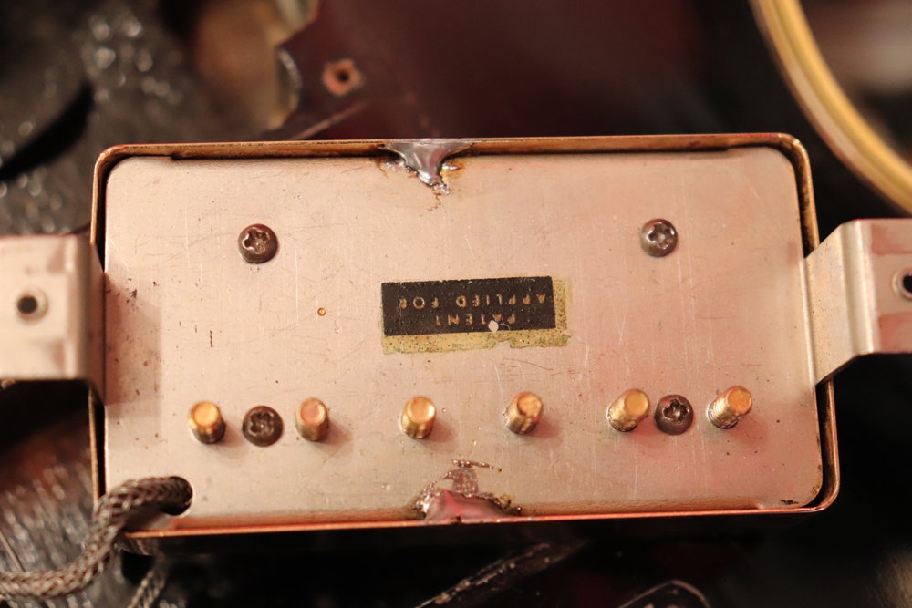 ピックアップには、フロントにゼブラ・ボビン、センターとリアは、なんとダブル・ホワイツ・ボビンのP.A.Fが搭載されています