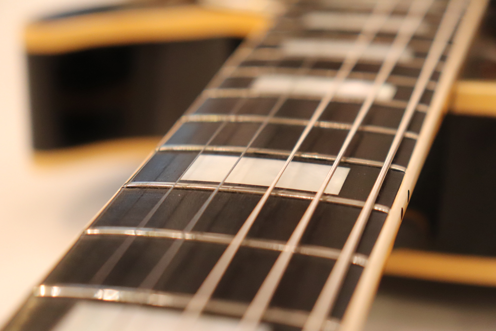 ヘッドと指板のインレイにはマザー・オブ・パールを採用した、正に"ビューティ" と言う言葉が相応しいクールな