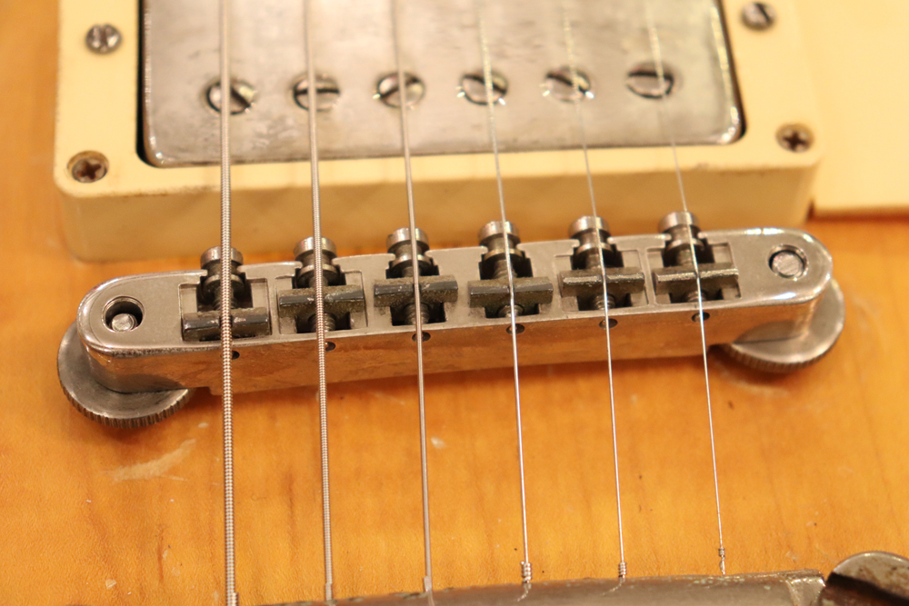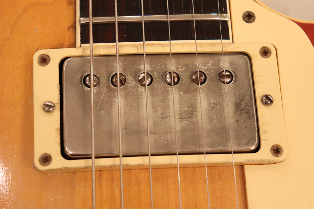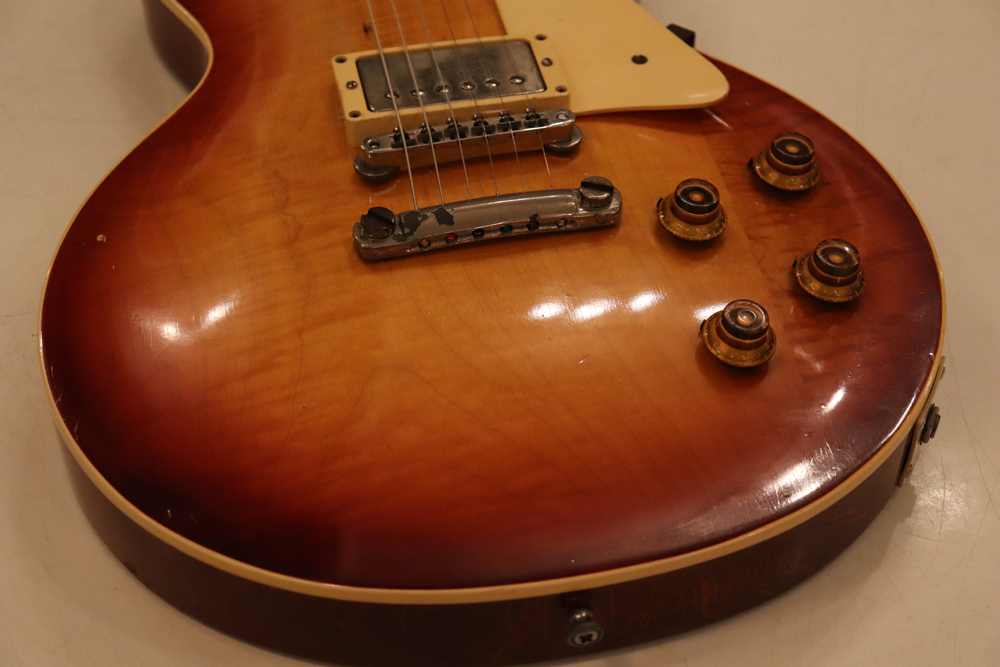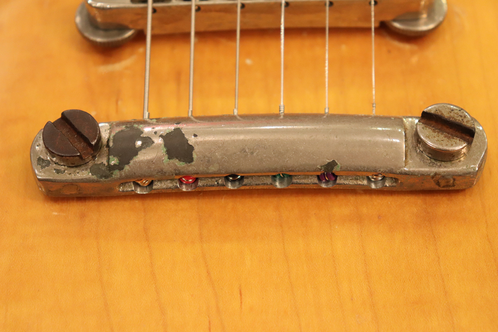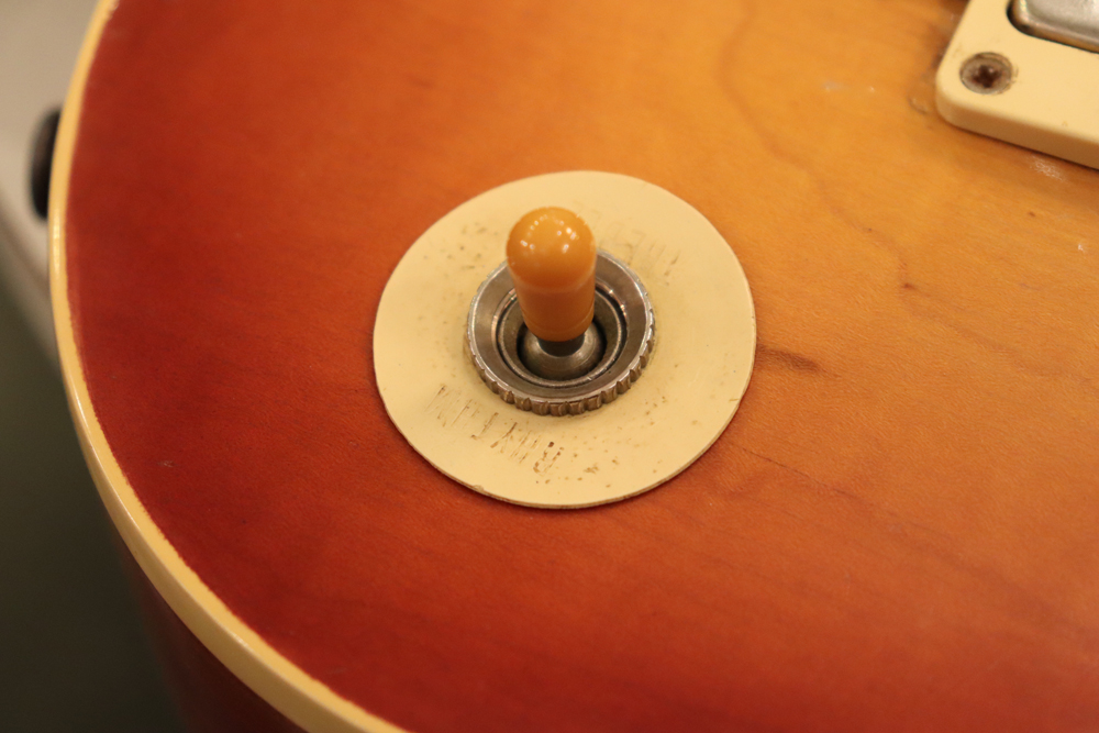 オリジナル・チューン・オー・マチック・ブリッジ仕様の、55〜56年製ゴールド・トップ・レス・ポールをベースに、バースト・スタイルにしたコンバージョン・レスポール!