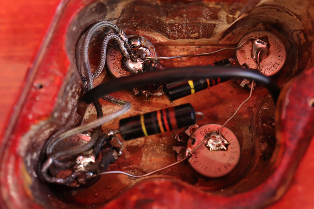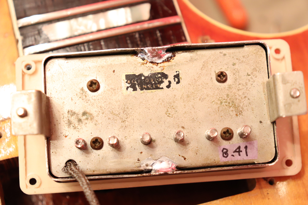 ポット等は60年代デイト、キャパシターはヴィンテージのバンブルビーを使用しています