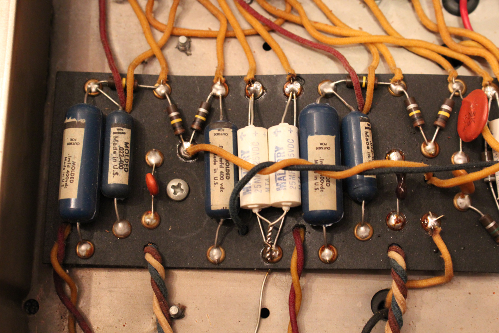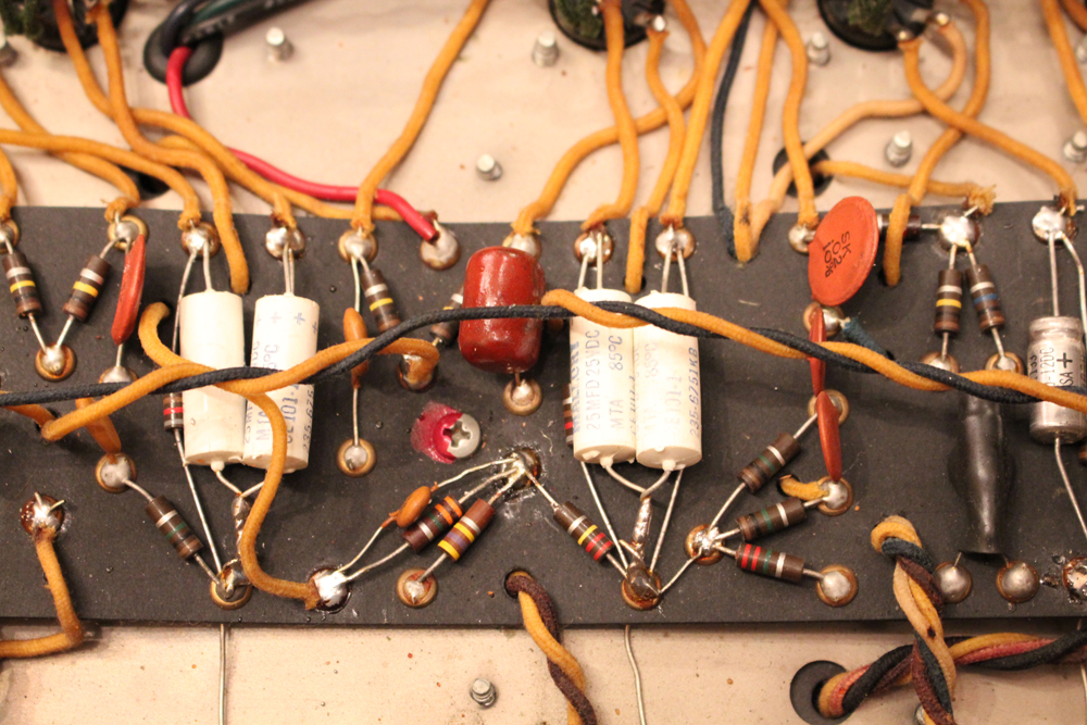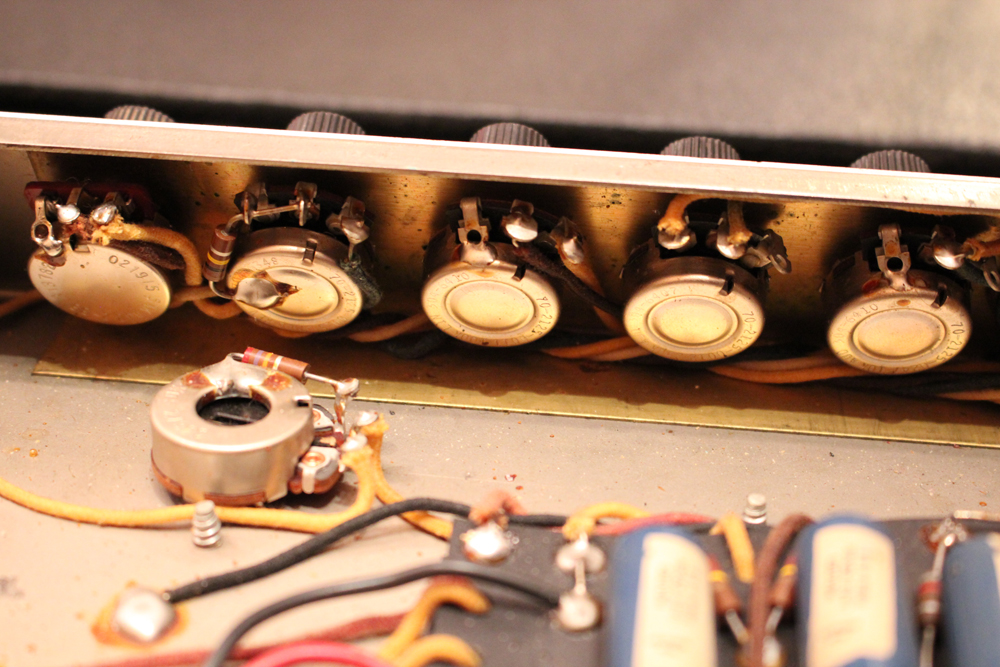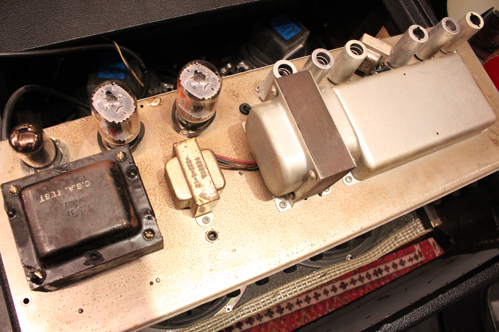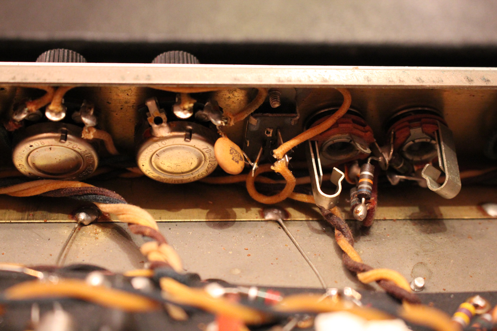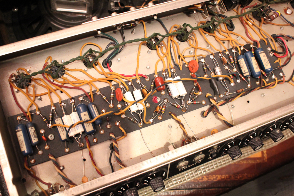 内容も最小限のメンテナンスに伴うキャパシターのリプレイスと、スピーカーが少し後の年代の、フェンダー・オリジナルの物が搭載されている以外はオリジナルです