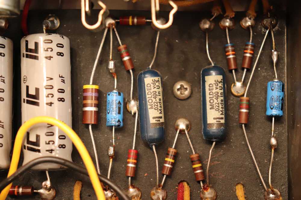 内容は、オリジナルの脆い電源ケーブルの交換と、メンテナンス場で必要な数個のキャパシターがリプレイスされており、スピーカーが少し前のジェンセン・アルニコ・スピーカーが搭載されています