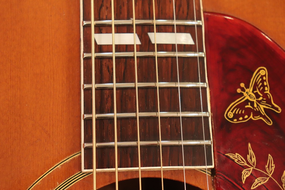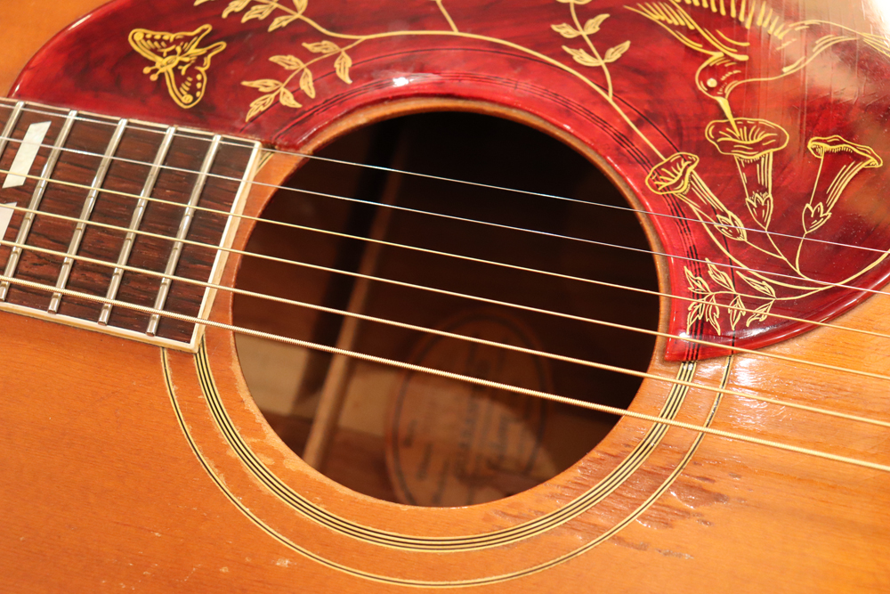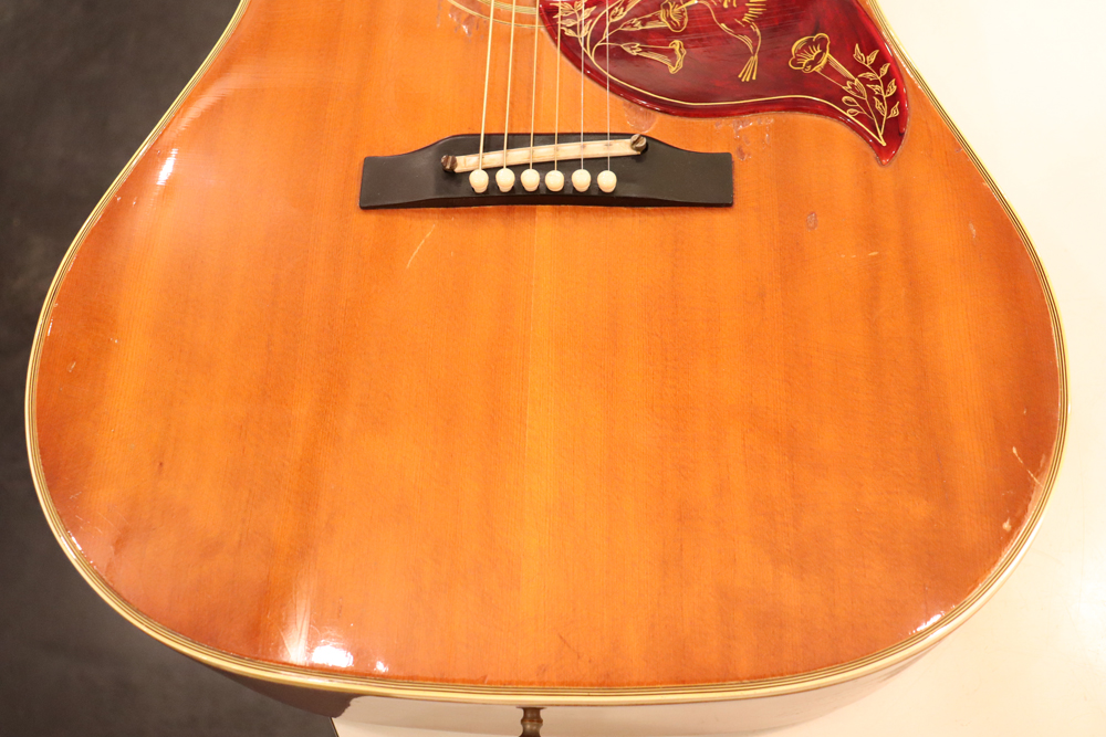 サウンドもギブソン・アコースティックならではな、ザクザクしたパワフルなサウンドで、外観からも理解出来る様に、良く鳴る機体だからこそ、弾かれ続けてきたハミングバードです