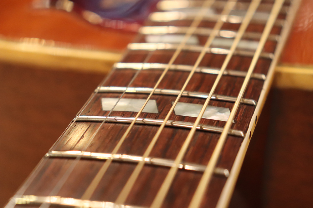 今回入庫は、ギブソンの黄金期と言われる最終期の64年製の機体で、42ミリ幅のワイド・ナット・ネック仕様!