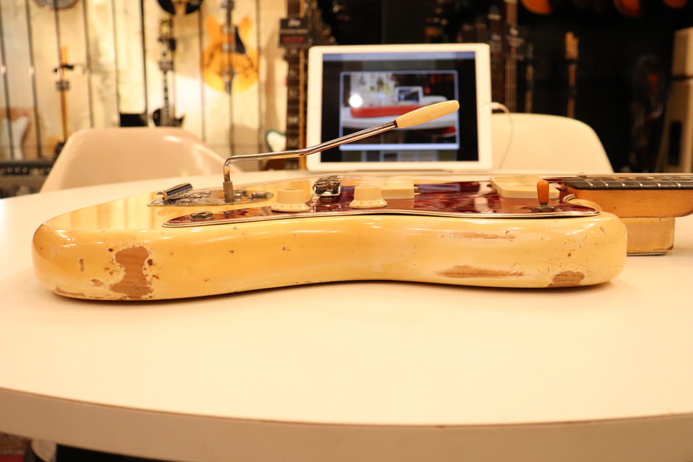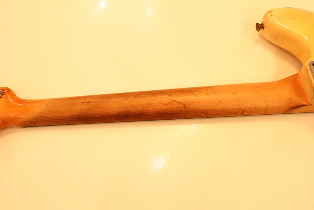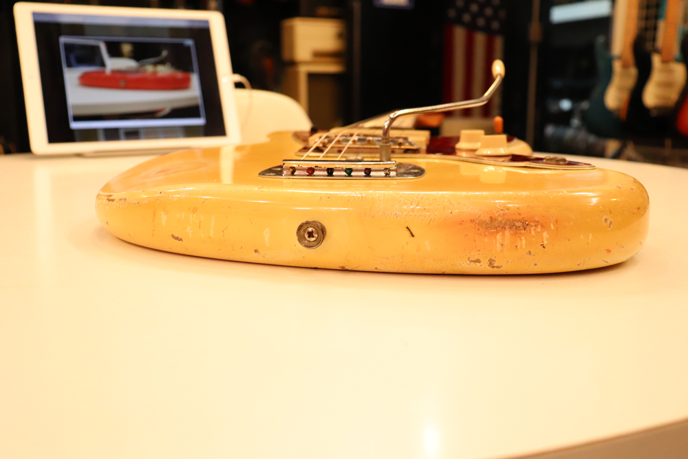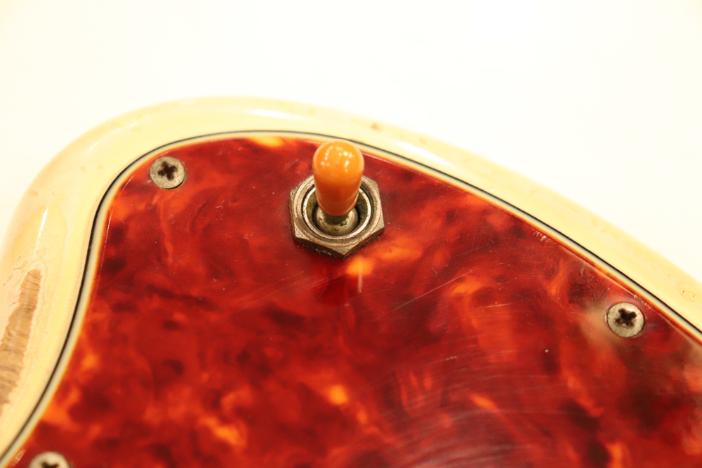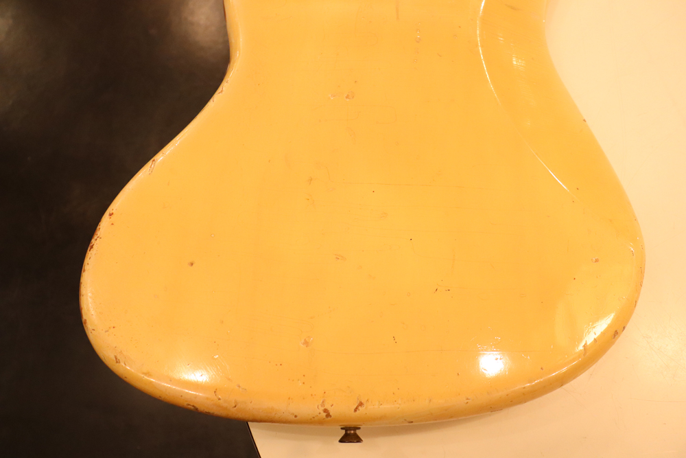 ジャズマスターでは、58年モデル発売時からラインナップされた"ブロンド・フィニッシュ"は、他のフェンダー・ギター同様に、ボディにはアッシュ材を使用し、シースルーのブロンド・フィニッシュを重ねる事で、アッシュの木目を際立たせる外観を持った独特なフィニッシュで、特にこの時期は、ボディトップとバックの中心部は薄く、サイドは重ね塗りを多くした“ブロンド・バースト・フィニッシュ”が特徴です