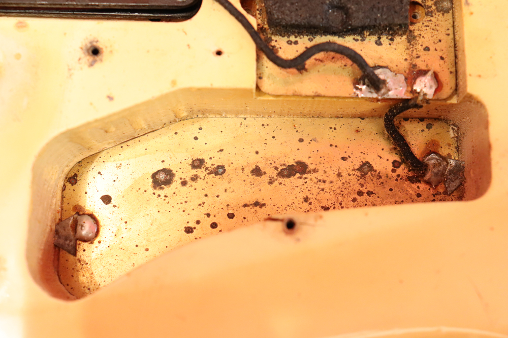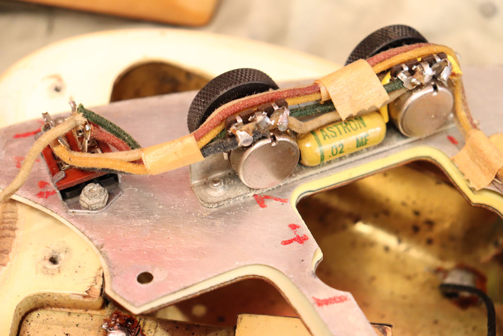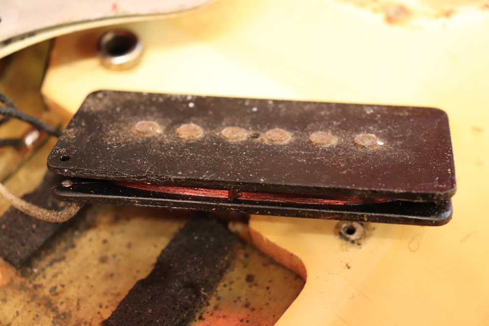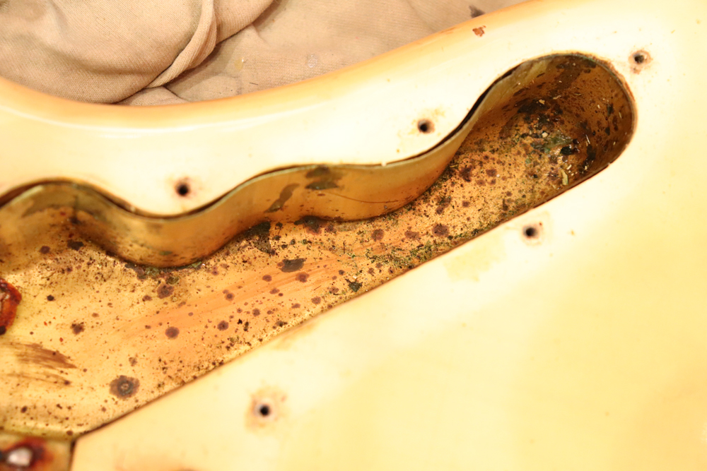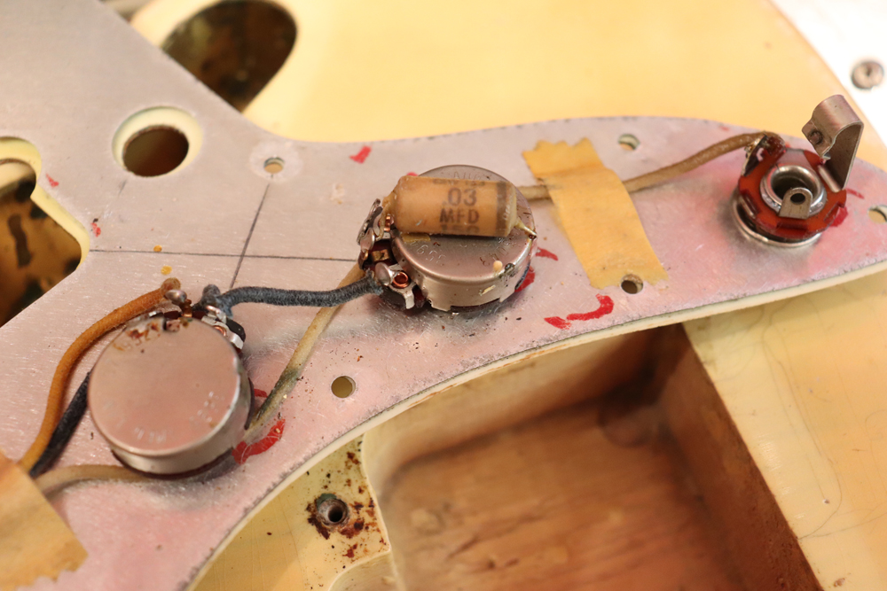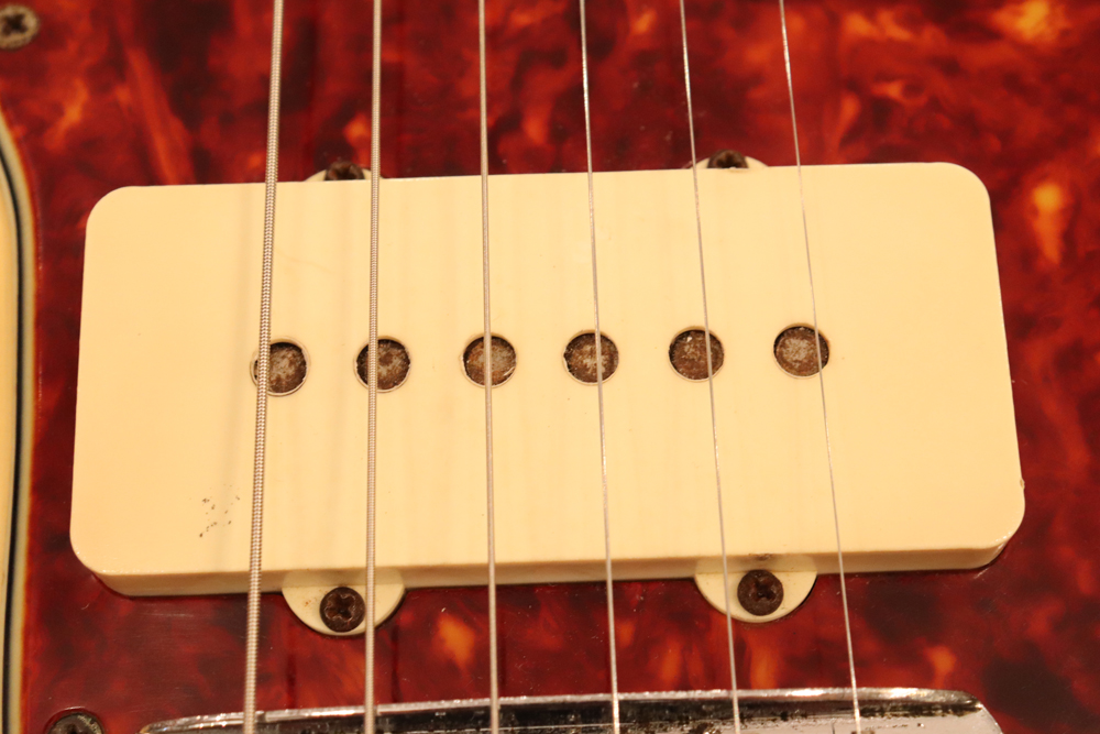ジャズマスターでは、58年モデル発売時からラインナップされた"ブロンド・フィニッシュ"は、他のフェンダー・ギター同様に、ボディにはアッシュ材を使用し、シースルーのブロンド・フィニッシュを重ねる事で、アッシュの木目を際立たせる外観を持った独特なフィニッシュで、特にこの時期は、ボディトップとバックの中心部は薄く、サイドは重ね塗りを多くした“ブロンド・バースト・フィニッシュ”が特徴です