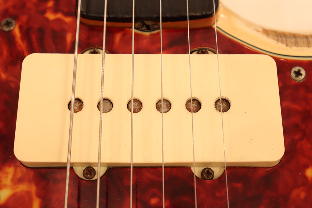 内容は、パーツはオリジナルをキープしており、フレットのみリプレイス済みでプレイアビリティも良い機体です