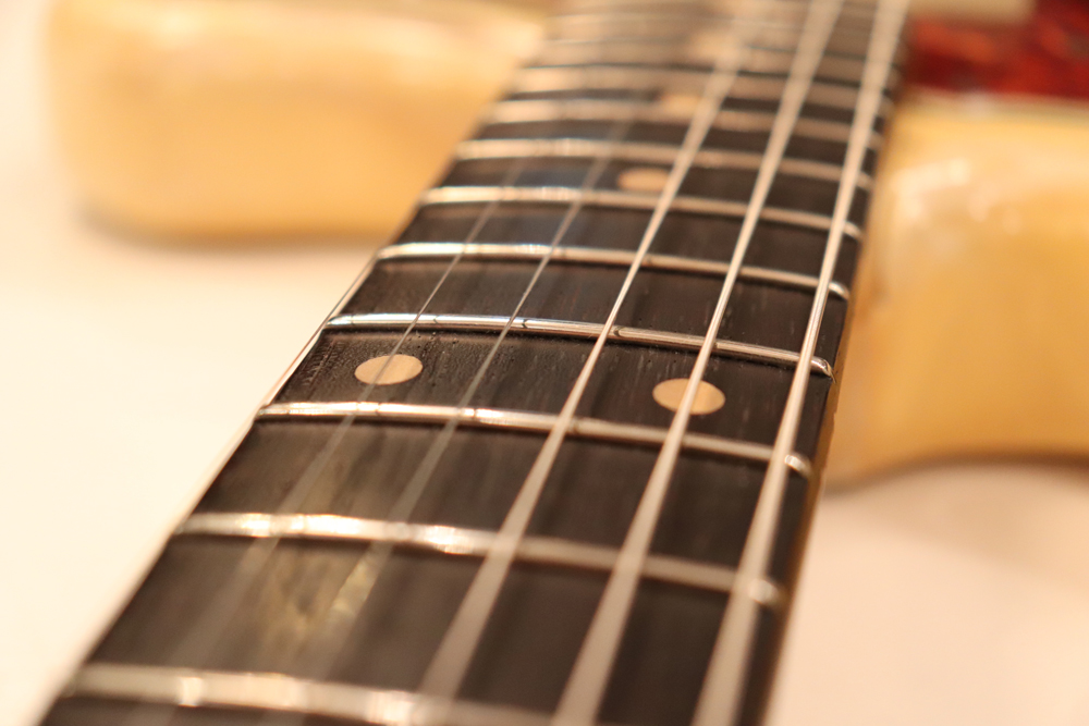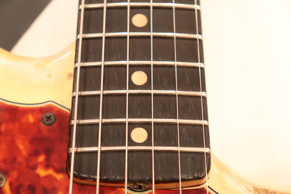 今回入庫は、ローズウッド材が採用されたスラブ・フィンガーボードネック期の60年製で、ヴィンテージなりのウエア等は些少ございますが、全体的には良い状態をキープしたエクセレント・コンディション!