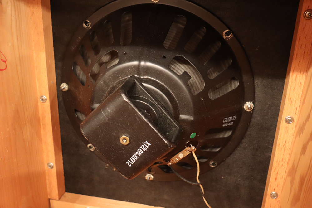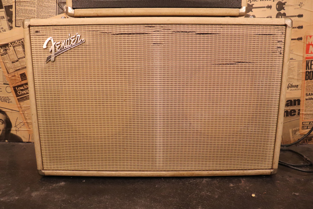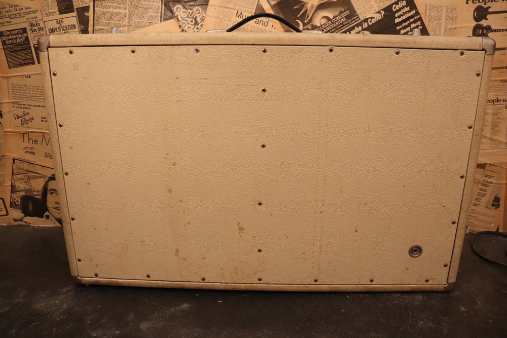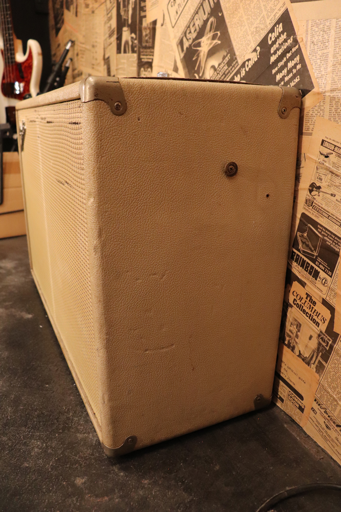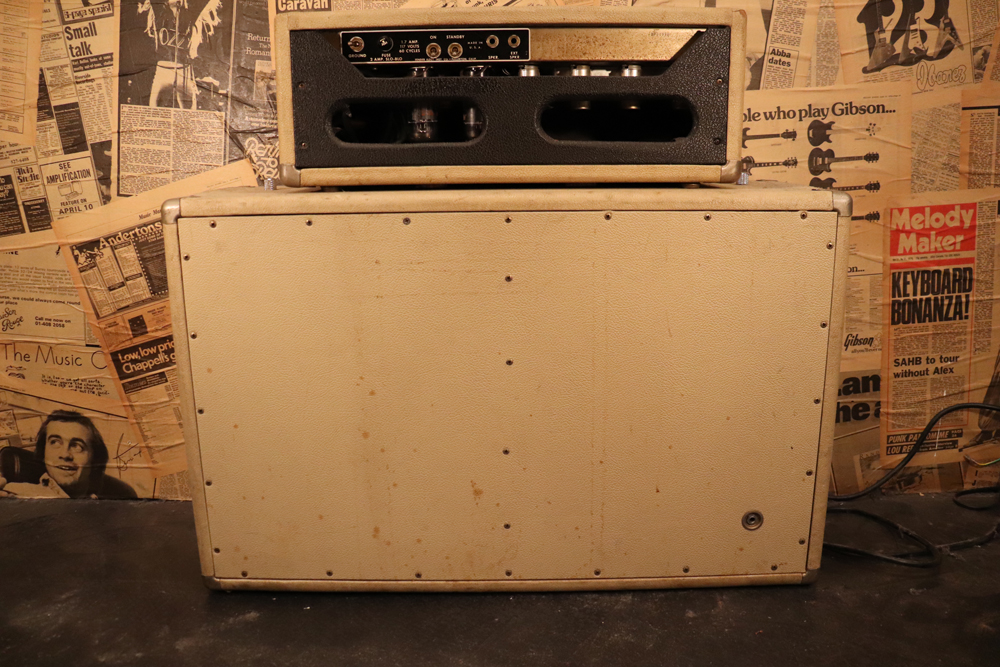 キャビネットは少しサイズの大きい同年代のバンドマスター用のキャビネットと思われるキャビネットがセットされており、スピーカーはオリジナルのオックスフォード製の12インチ、64年製が搭載されています