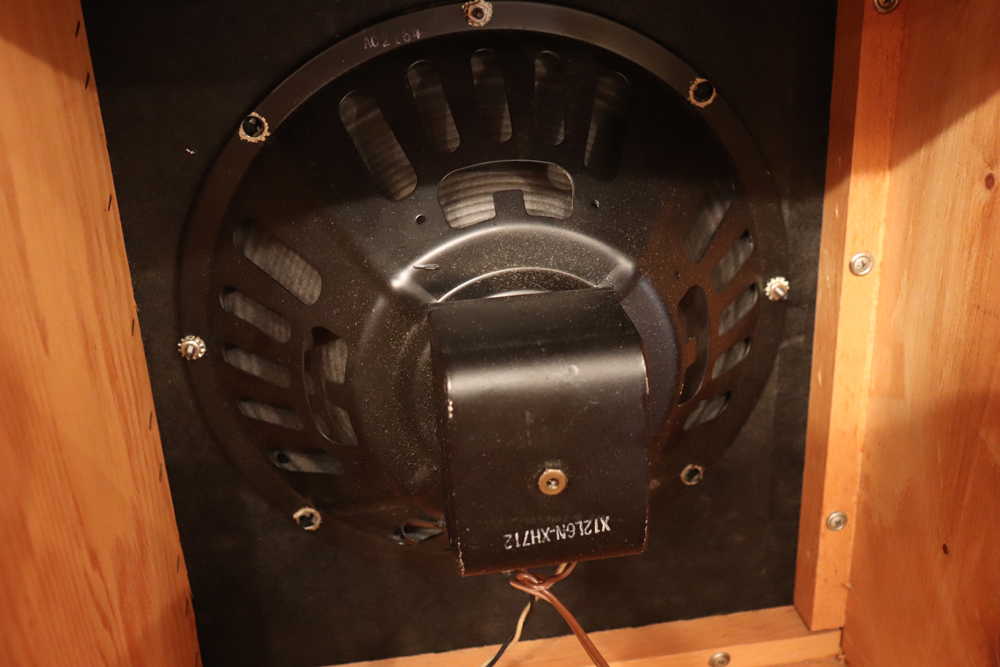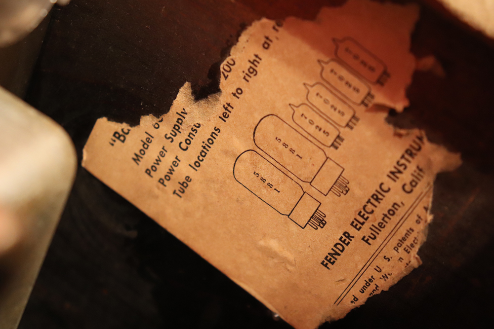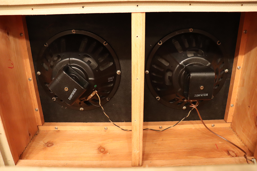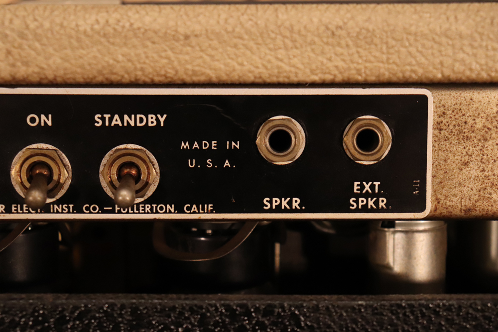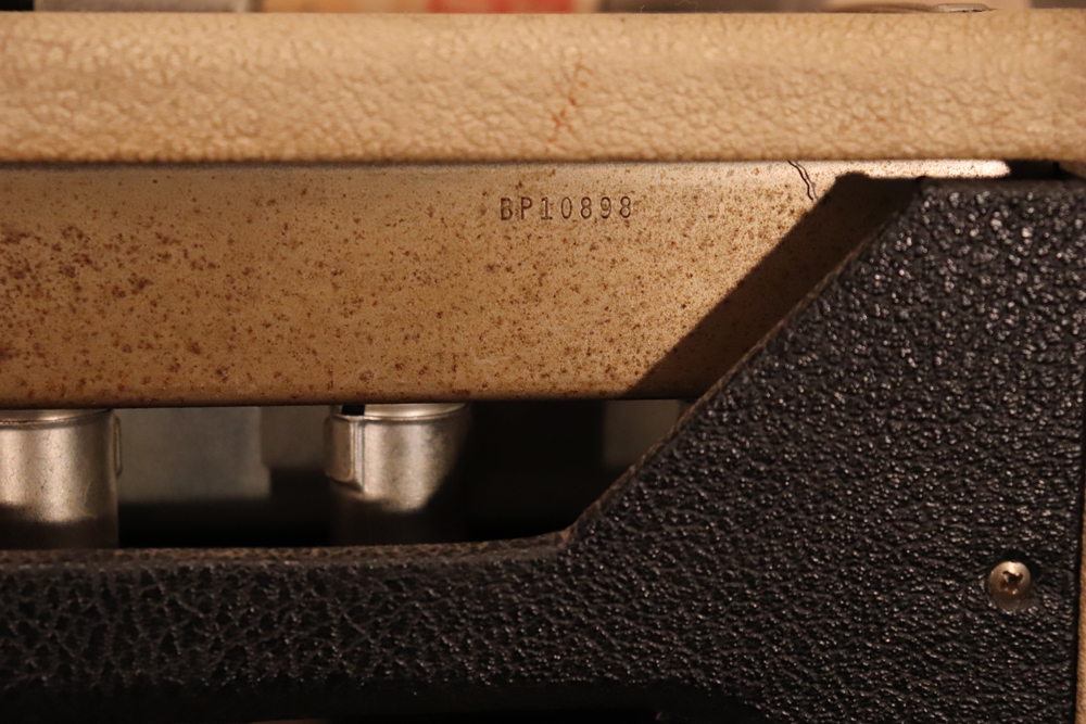 キャビネットは少しサイズの大きい同年代のバンドマスター用のキャビネットと思われるキャビネットがセットされており、スピーカーはオリジナルのオックスフォード製の12インチ、64年製が搭載されています