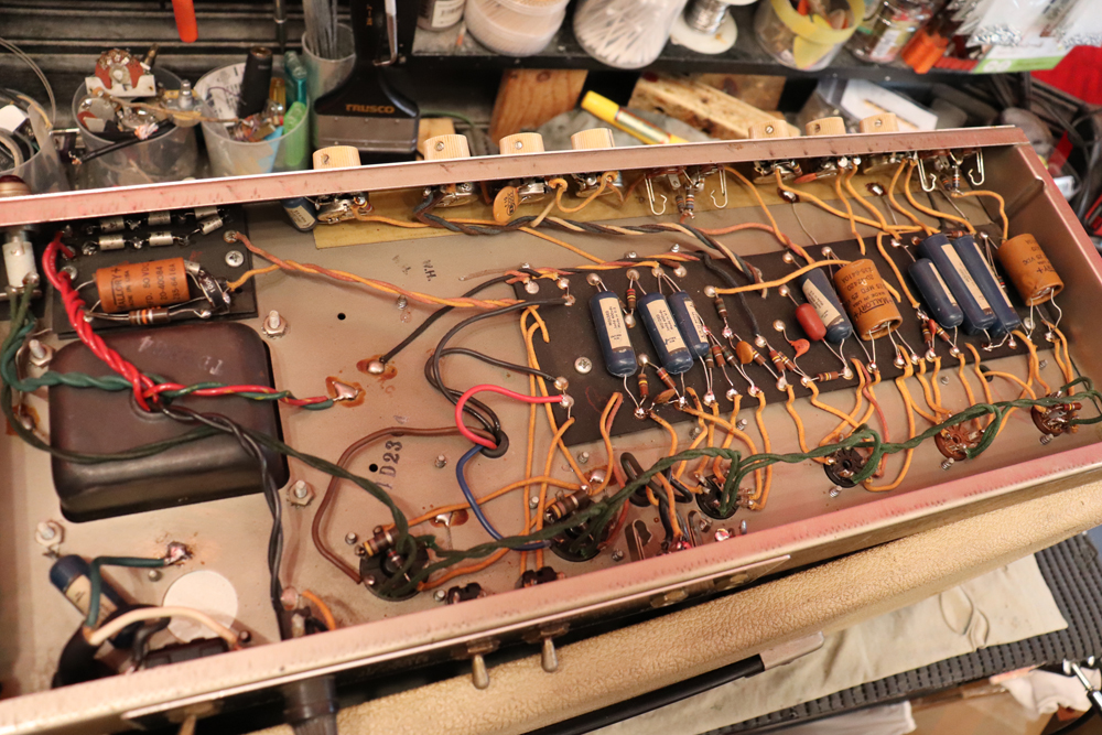 ラフ・ホワイト・トーレックス・仕様の64年製ベースマン・アンプ・ピギィーバック!