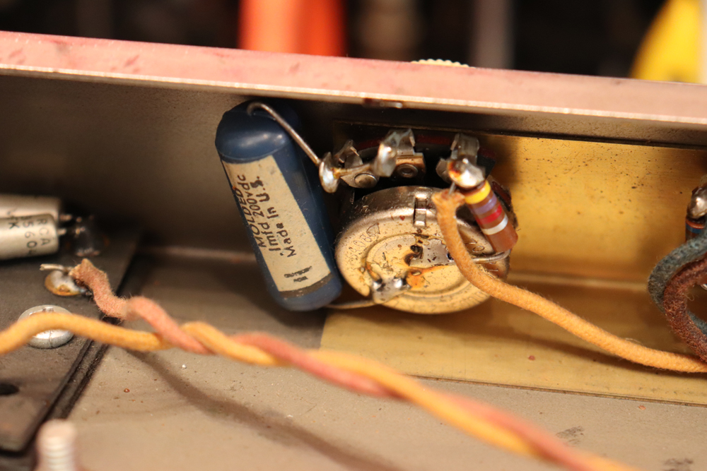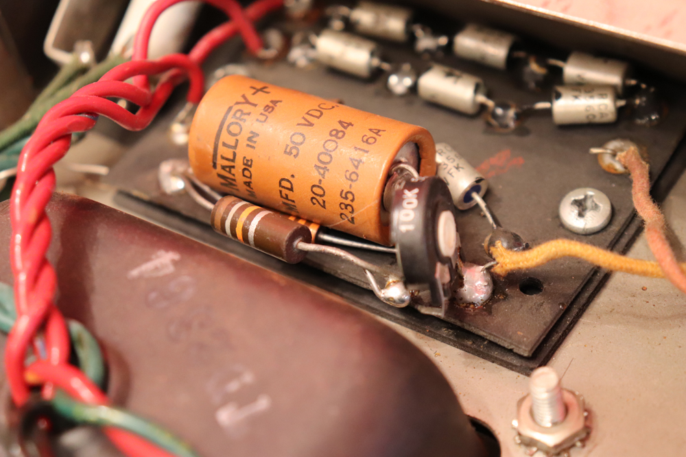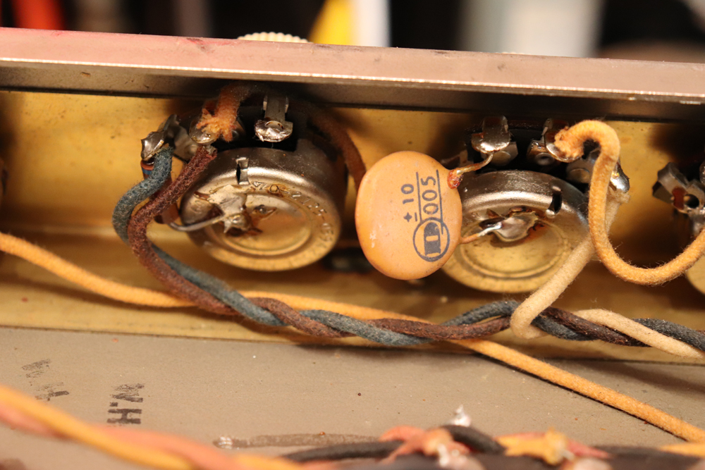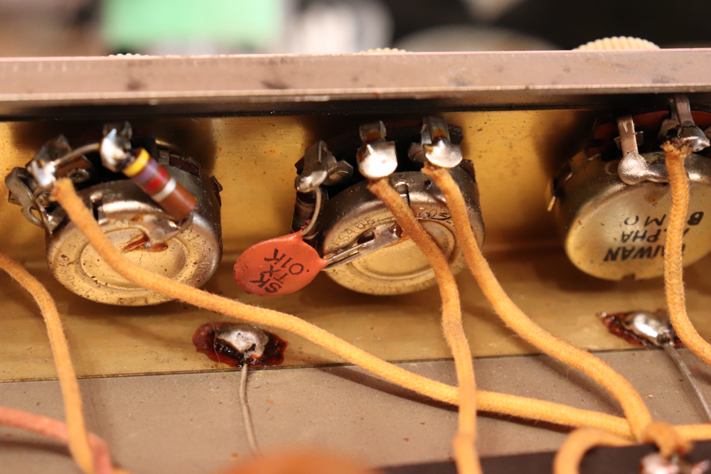 内容は、トランス等、主要部は勿論オリジナルで、ベースチャンネルのヴォリュウム・ポット、3P仕様への電源ケーブル、バックパネルが交換されています