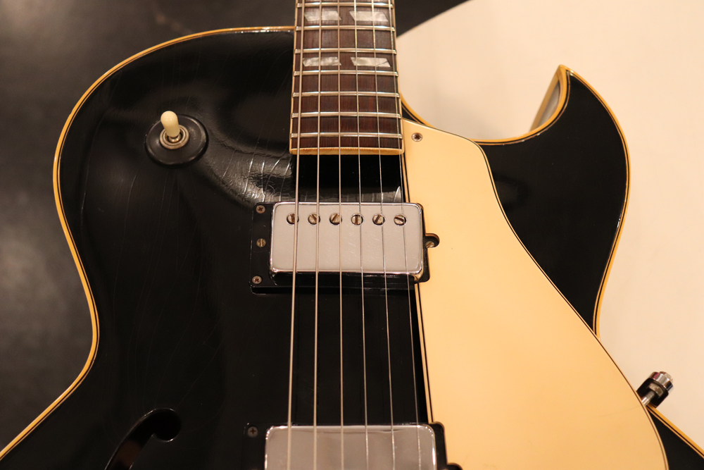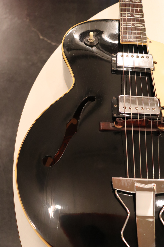 “ES-175”のブラック・フィニッシュだけに採用されたホワイト・カラーのピックガードも特徴的です!