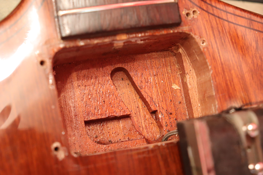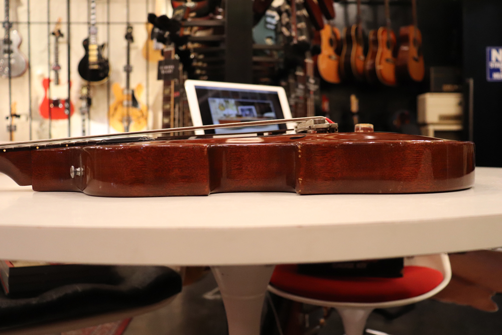 こちらはその最終年度の個体で、ボディトップには"f"ホールとボディ外周に沿ってストライプペイント施されたモデルです