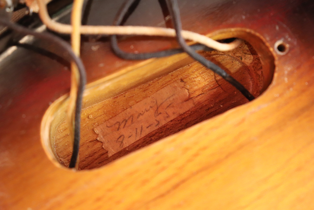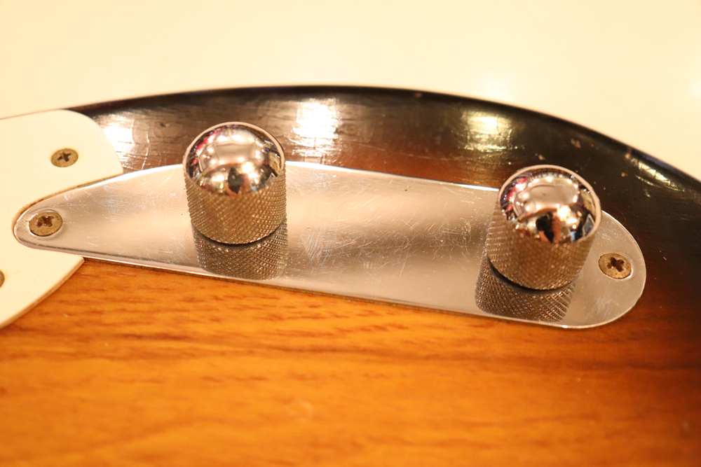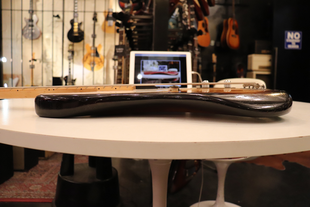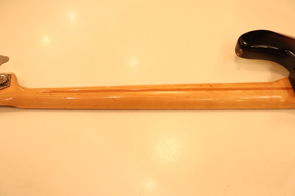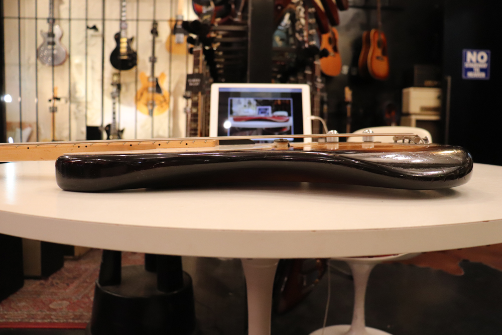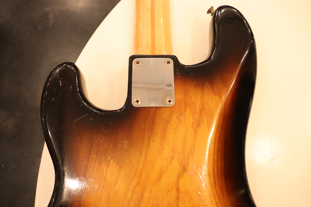 今回入庫は54年迄の仕様からマイナーチェンジが施された55年製で、前年迄のテレキャスターと同様のブロンド・フィニッシュ、コンタード・ボディから、アッシュ材まま、ストラトキャスターと同様なサンバースト・フィニッシュ、