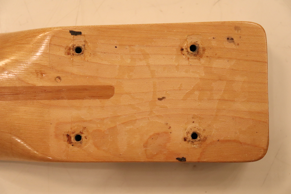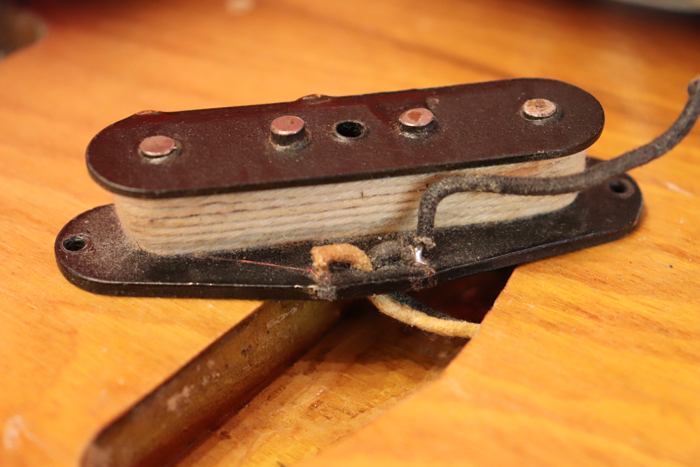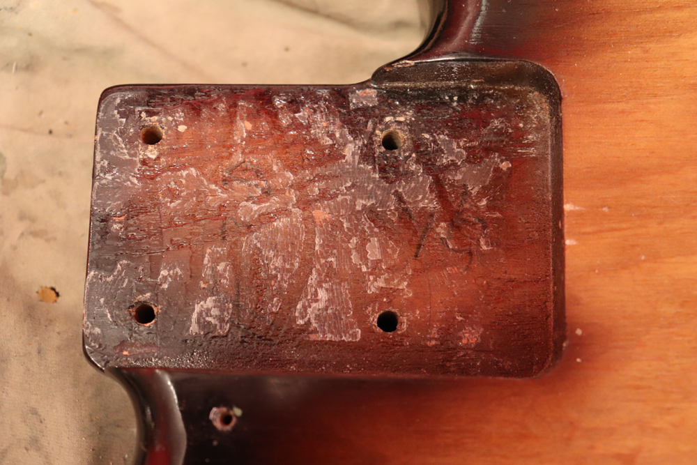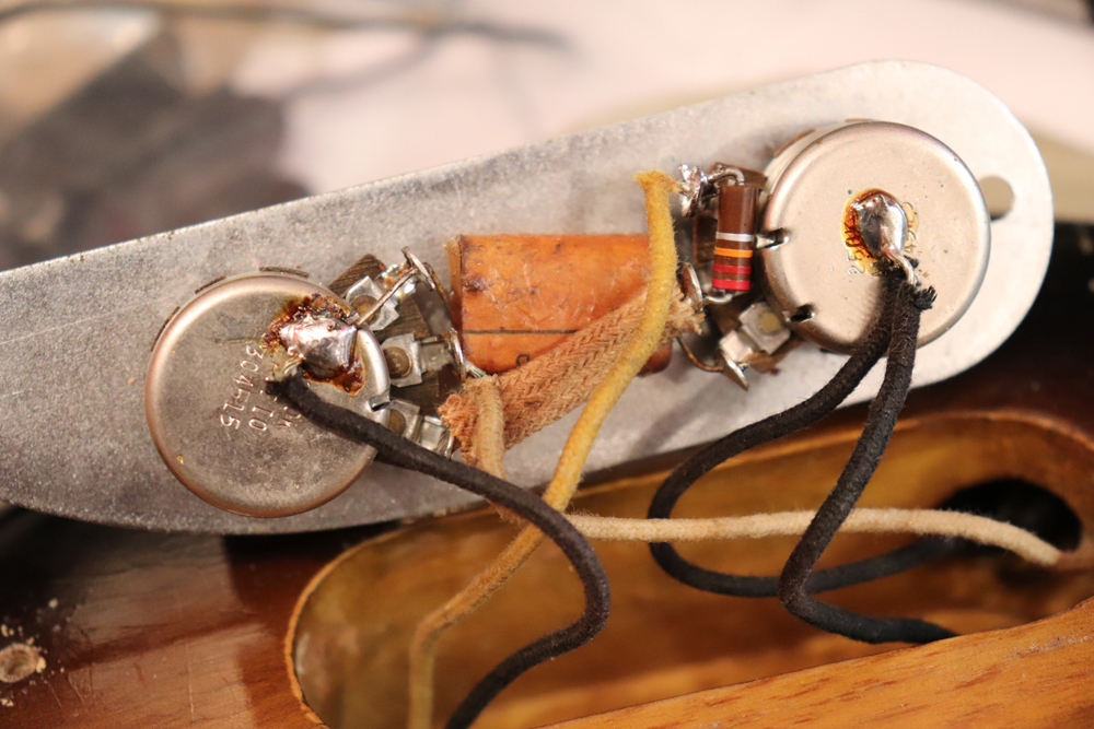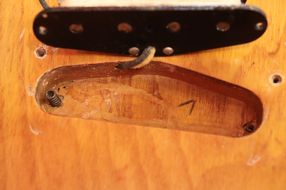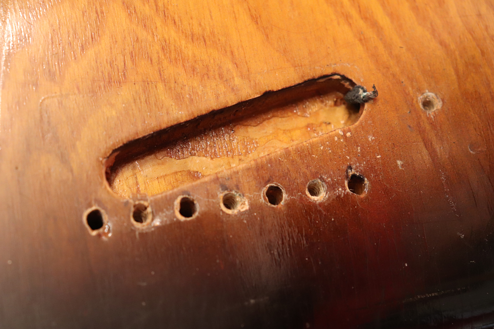 今回入庫は54年迄の仕様からマイナーチェンジが施された55年製で、前年迄のテレキャスターと同様のブロンド・フィニッシュ、コンタード・ボディから、アッシュ材まま、ストラトキャスターと同様なサンバースト・フィニッシュ、