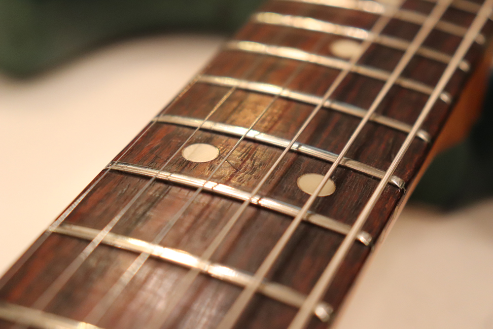 内容も、ナット、フレットはリプレイス済みでプレイアビリティも良く、パーツもピックアップ・高さ調整用のゴムのリプレイス以外はオリジナルです