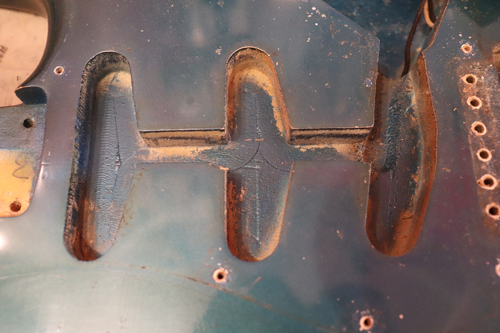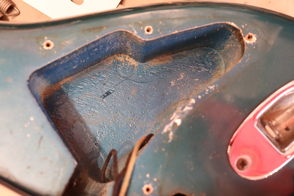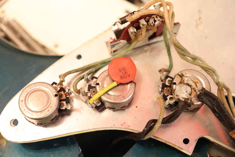 59年のローズウッド指板の採用時から使用されたグリーン・ガードの最終期です