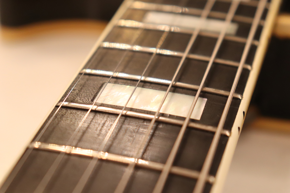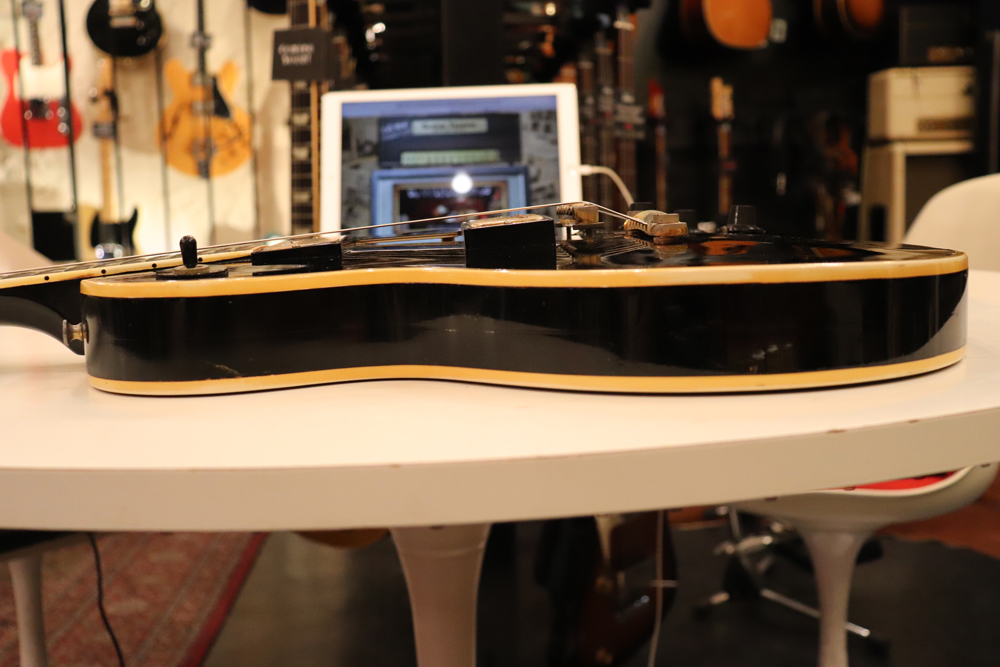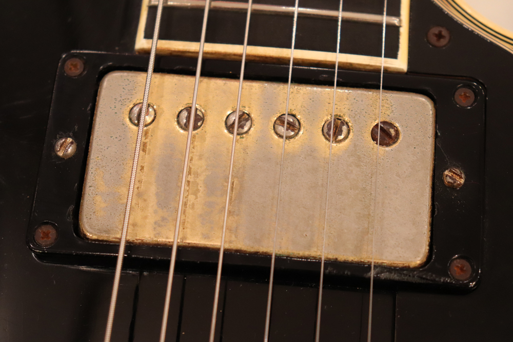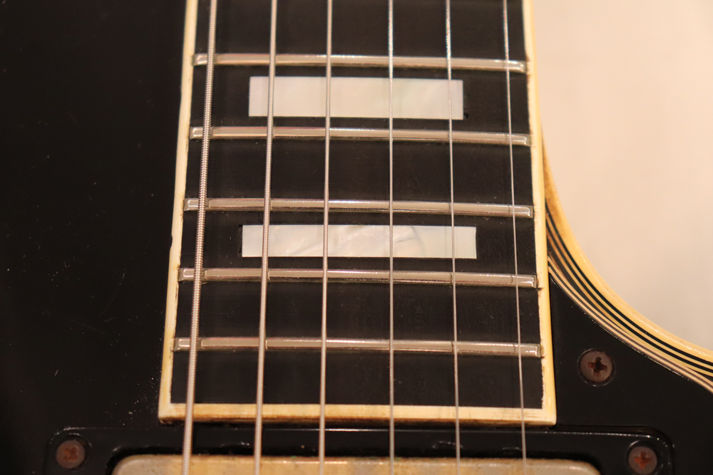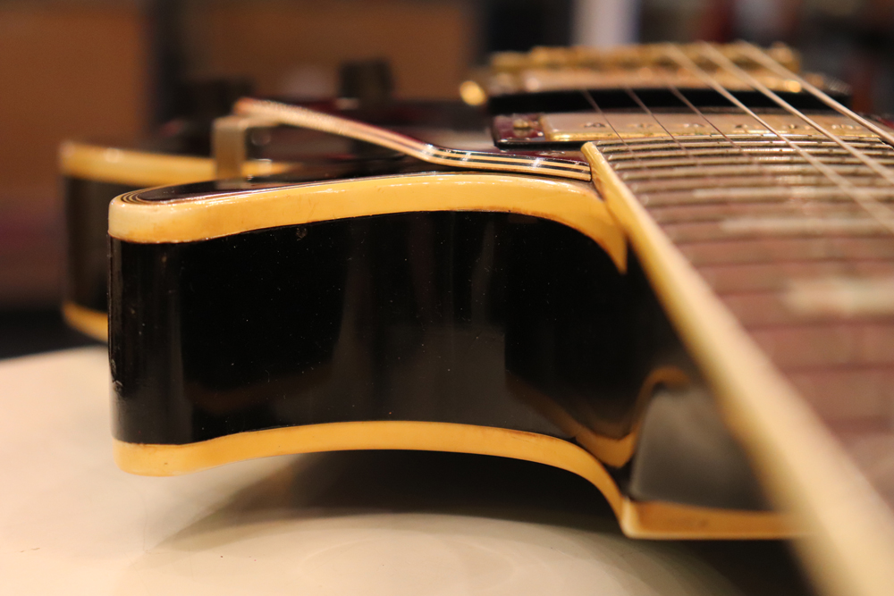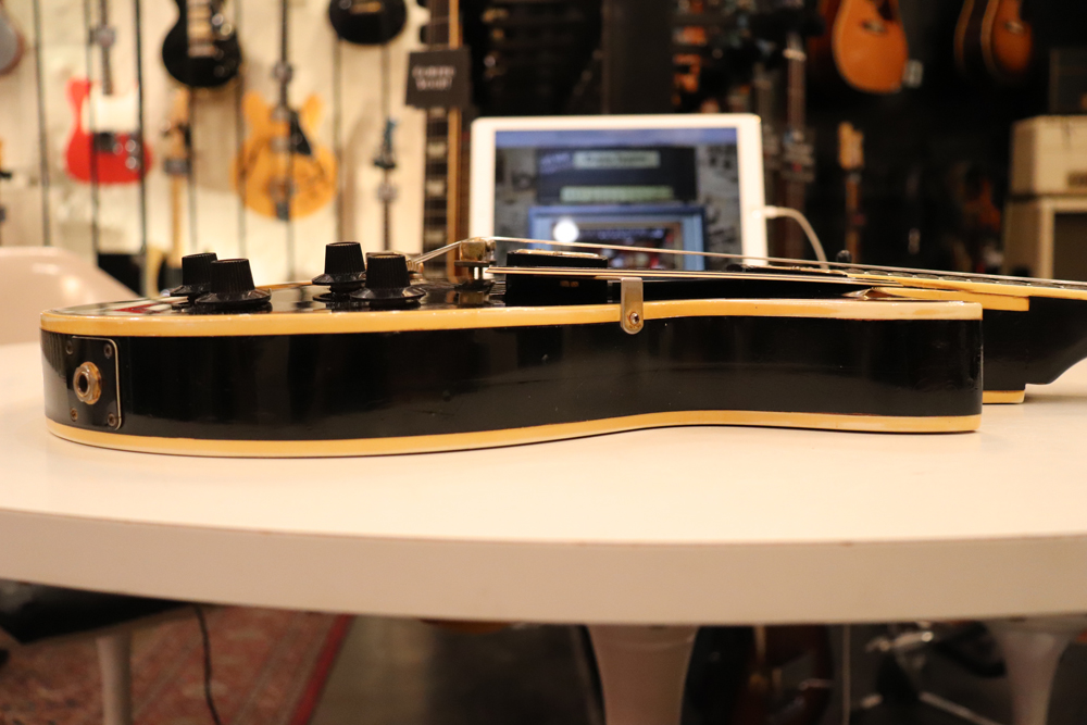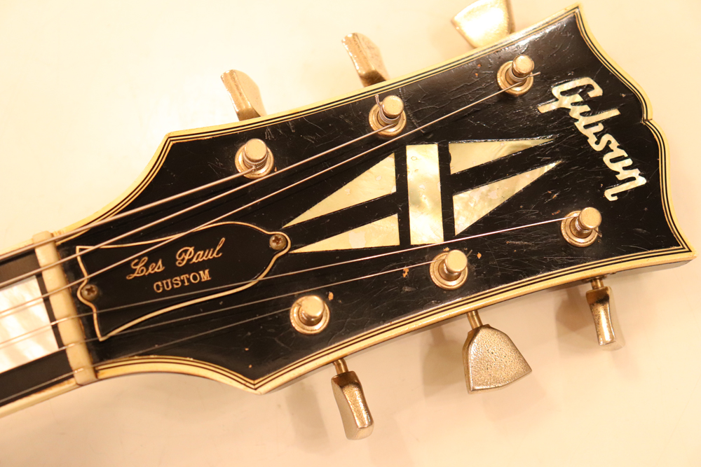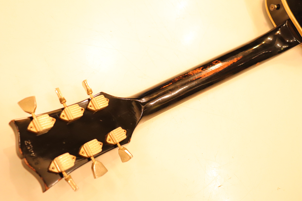 数種類の仕様が存在する、69年製のレスポール・カスタムですが、今回入庫の機体は、スリー・ピースのマホガニー・ネックと、ボディは積層仕様となる所謂“パンケーキ・ボディ”と呼ばれる69年の最終仕様の機体です