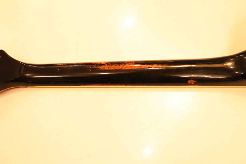 ネックには小さな形状のヴォリュートが付きながら、ヘッド裏側には“Made In USA”の刻印の無い仕様です