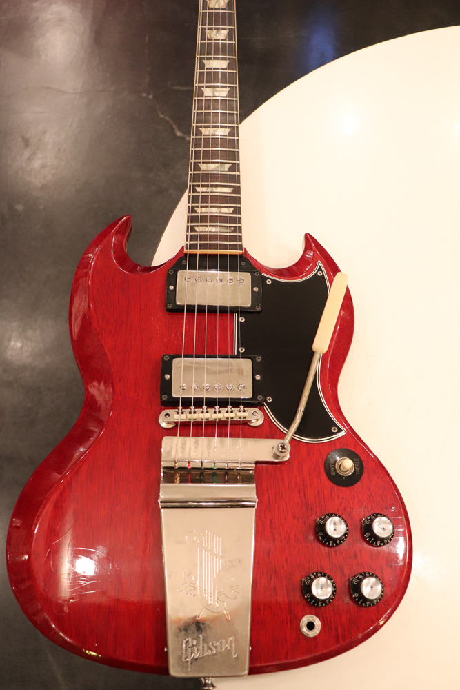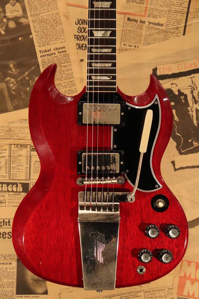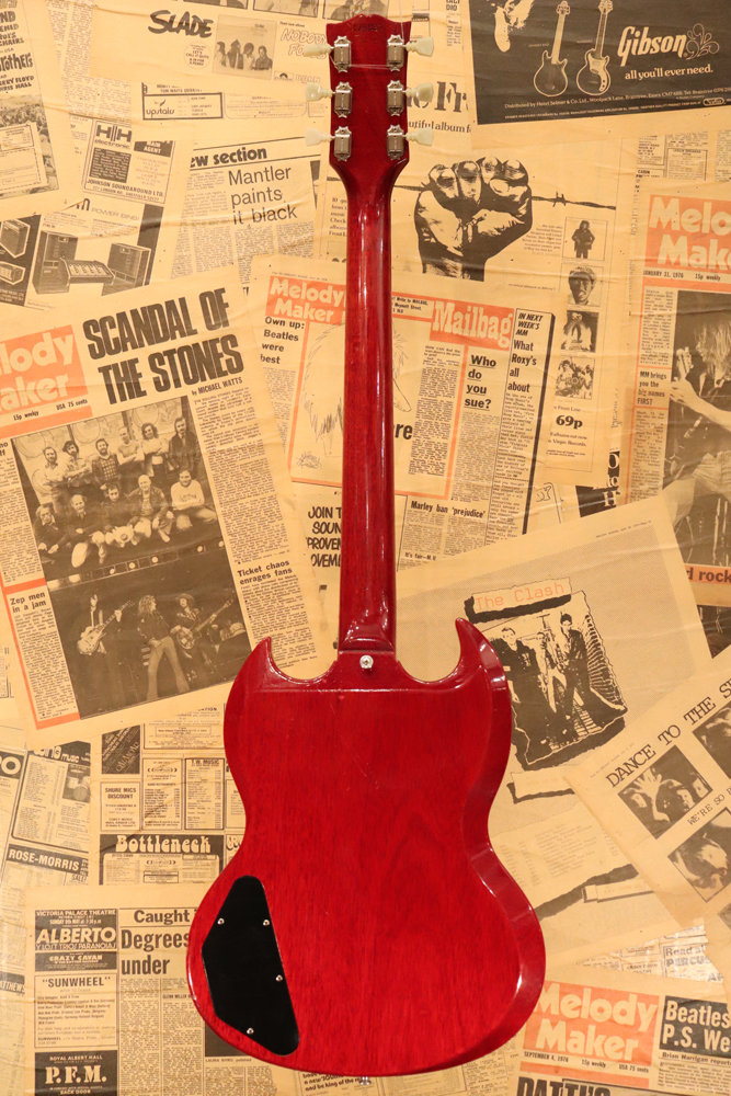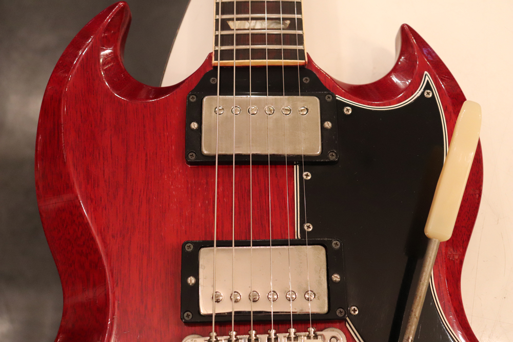 エリック・クラプトンやジョージ・ハリソン等の著名ギタリストが使用していた事で人気のスペックながら、約2年にも満たない生産期間の為、市場の個体数も少なく、現在ではヴィンテージSGの中でも一番人気のスペックです!