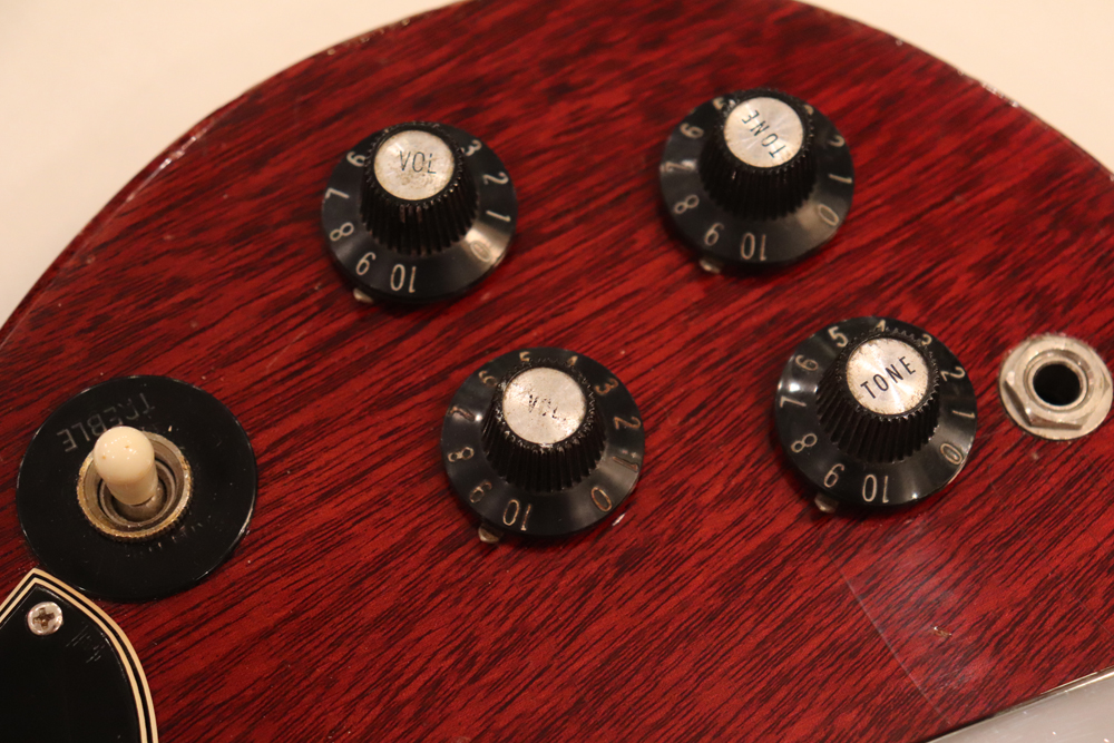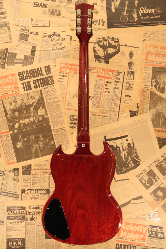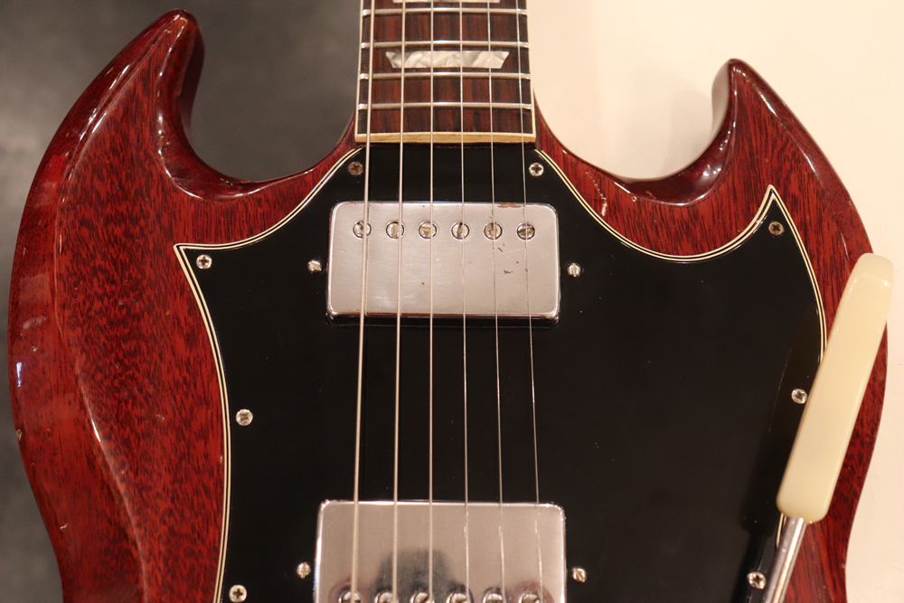 66年後期にモデルチェンジが施された、ワイド・ピックガード仕様のSG・スタンダード