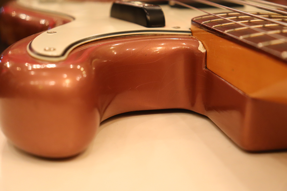 フェンダー全機種のカスタムカラーの中でも、非常に数が少ないバーガンディ・ミストですが、元々カスタムカラーが少ないプレシジョン・ベースとなれば、本当に希少な存在です