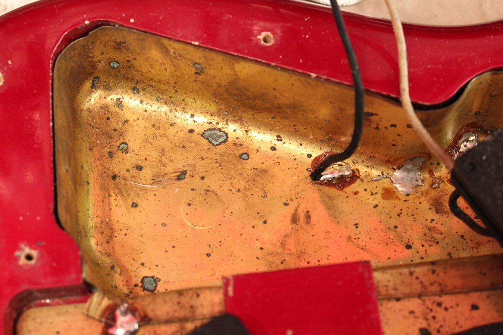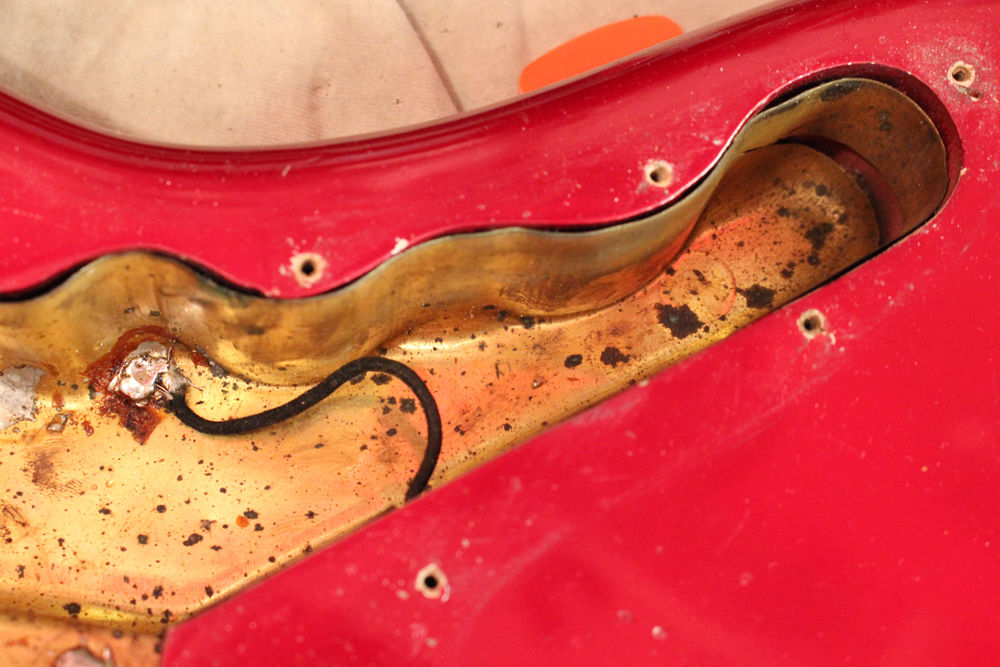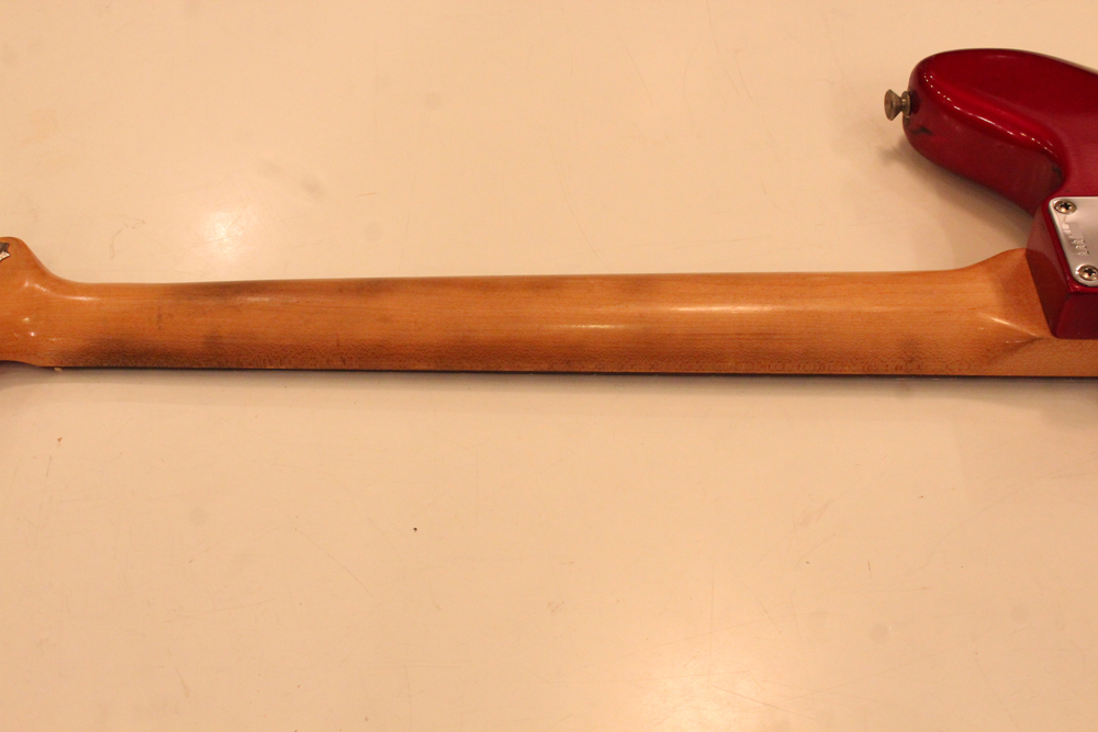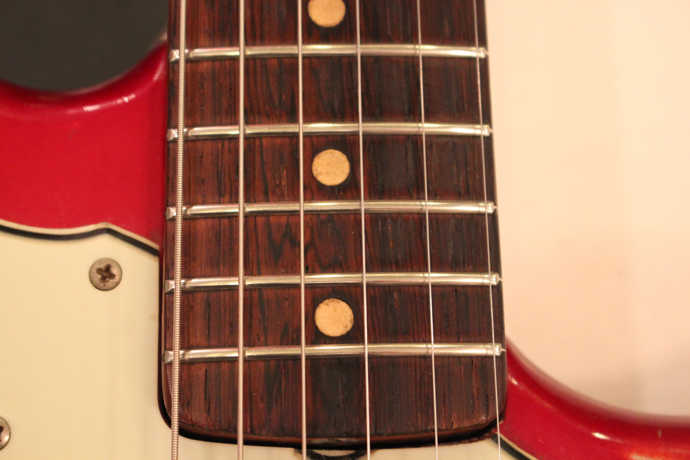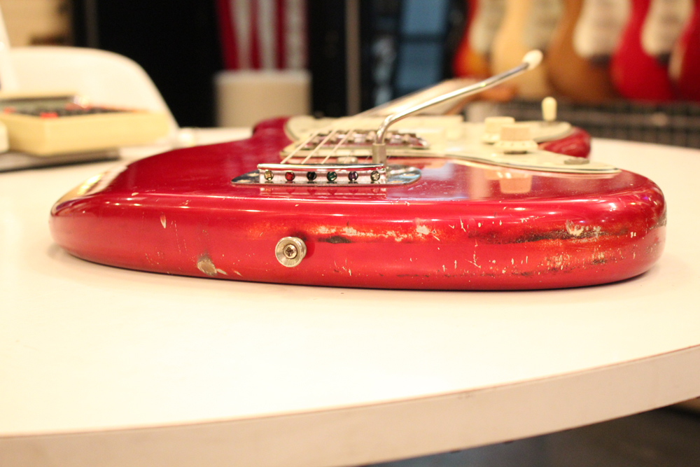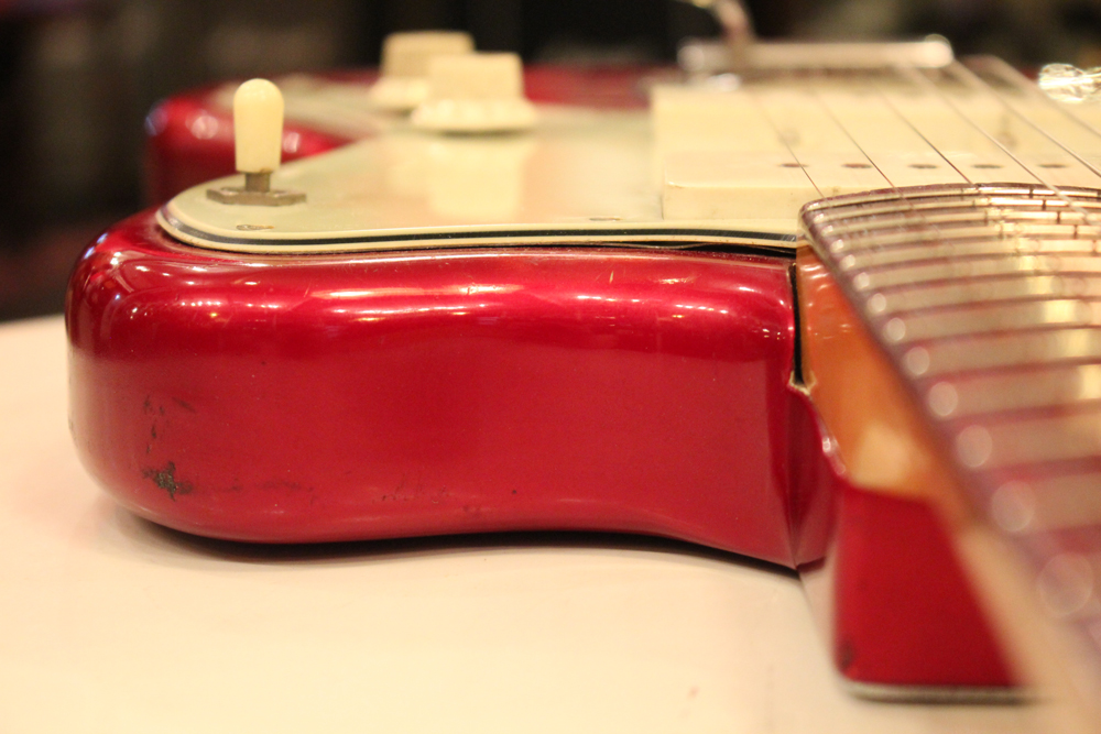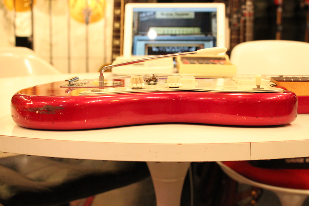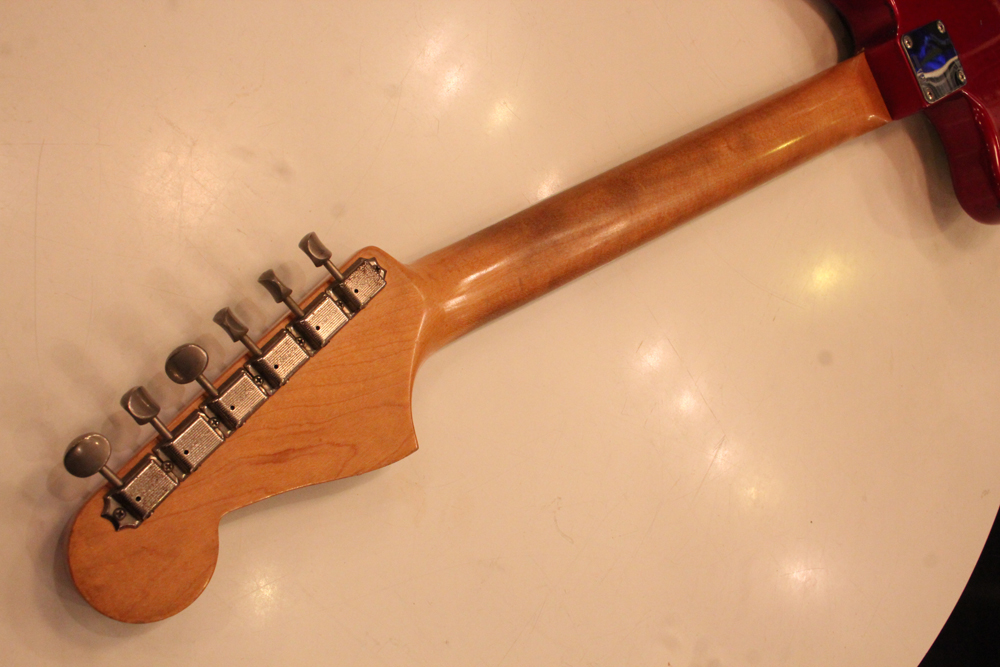 今回見つけて来た機体は、ヘッドはマッチング・フィニッシュにスパゲティー・フェンダー・ロゴ、ネックはクレイ・ドット・マーカー仕様で、ピックガードはグリーンガード仕様と、典型的なプリCBS期仕様のカスタム・カラー "キャンディ・アップル・レッド・フィニッシュ"!!