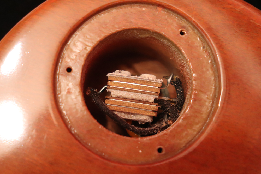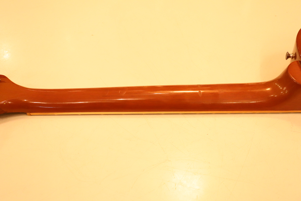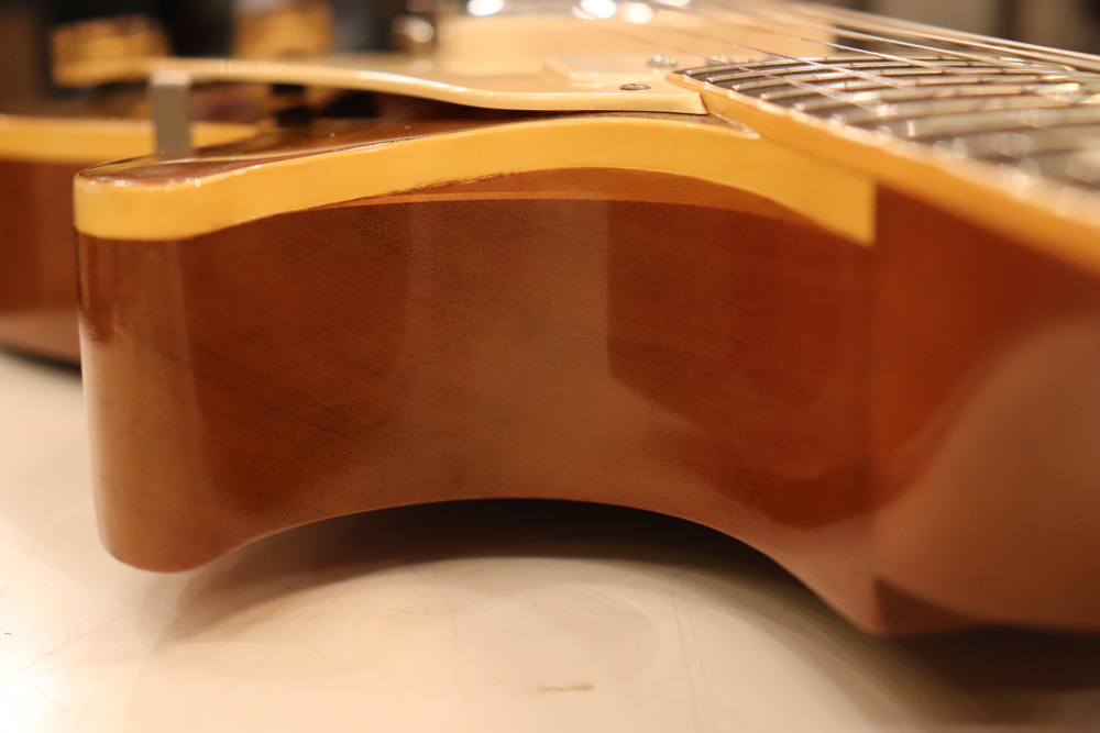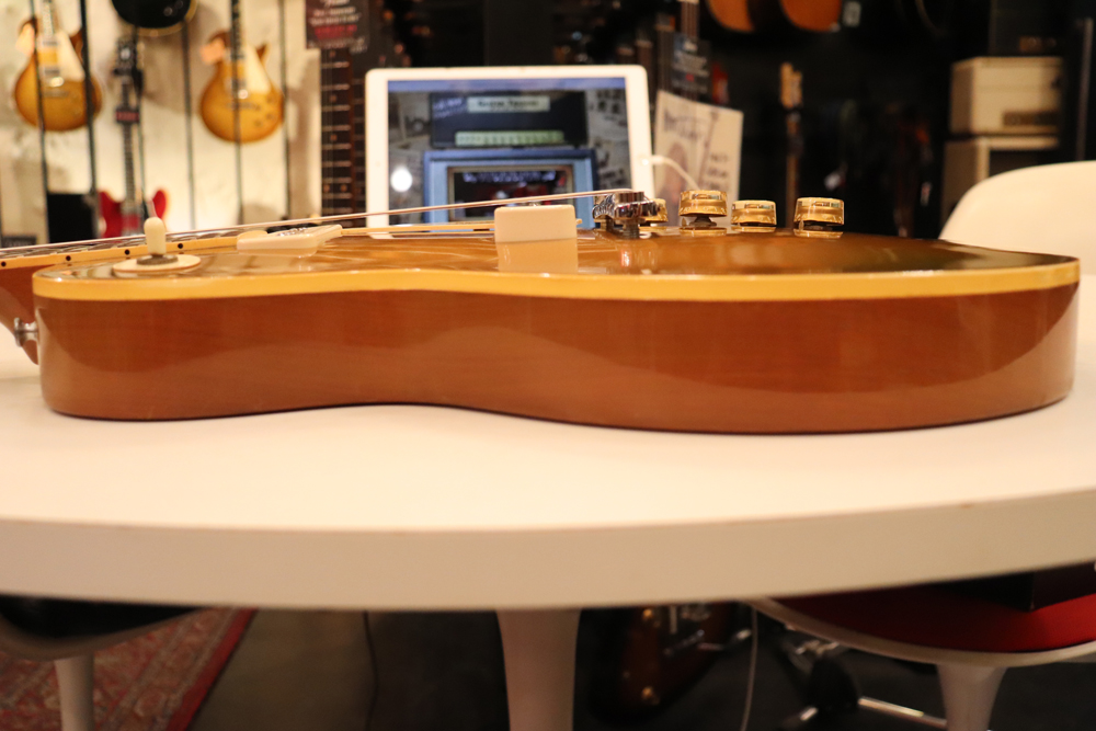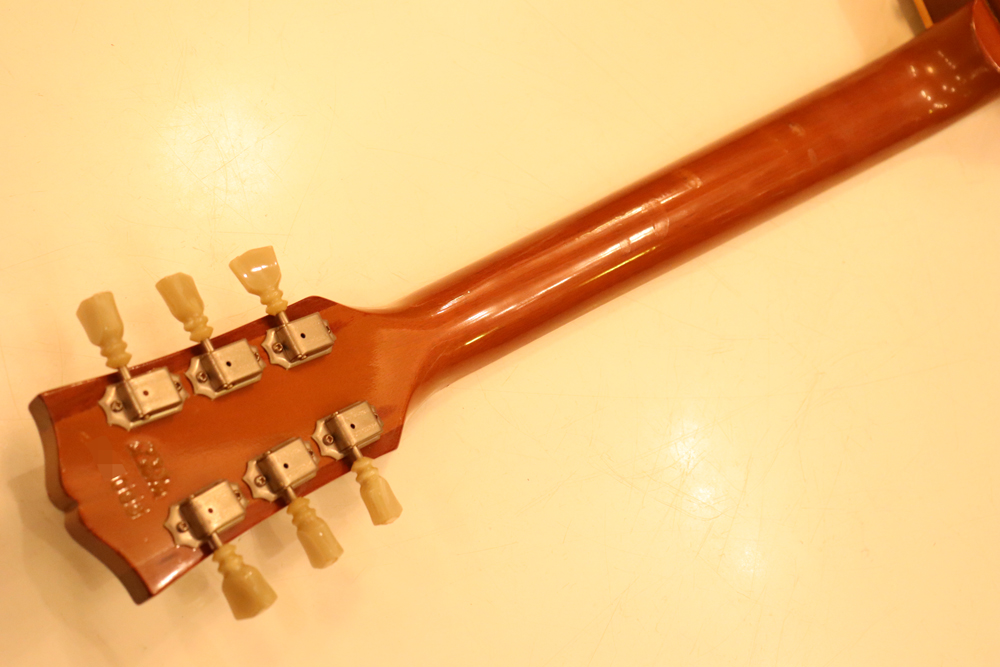 名称は"58"ですが、54年製の内容をリッシューしたモデルで、スモールヘッドに、既にレギュラーモデルでは廃止された、ワンピースのマホガニーのネックとボディバックは、50年代と同様な木取りを採用した特別なモデルです