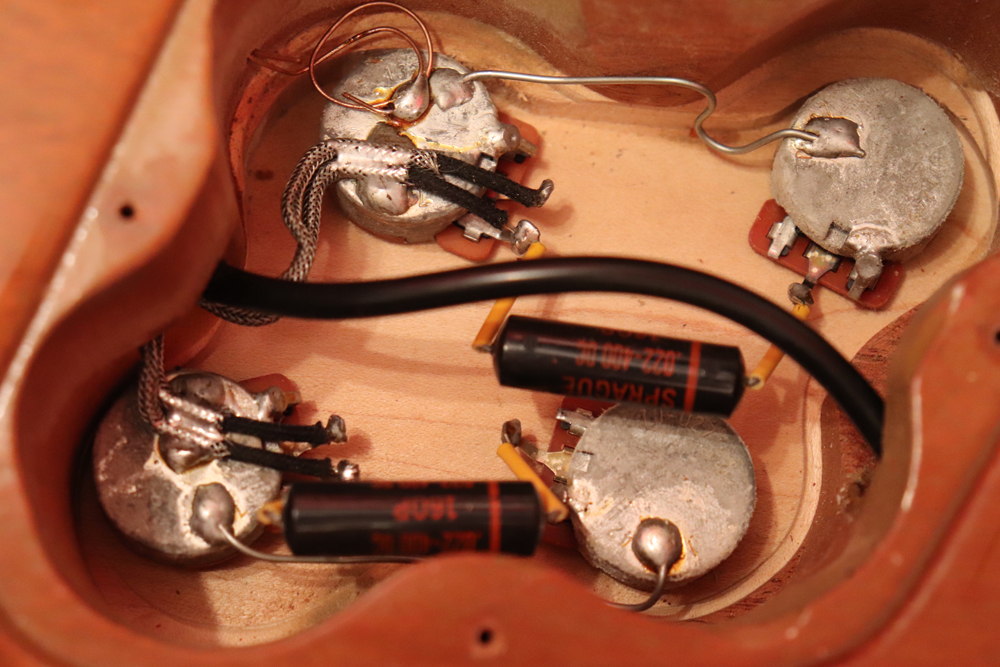フィニッシュはこのゴールド・トップとチェリー・サンバーストが用意され、P-90・ピックアップ周りにはリングが付いた仕様の物もありました